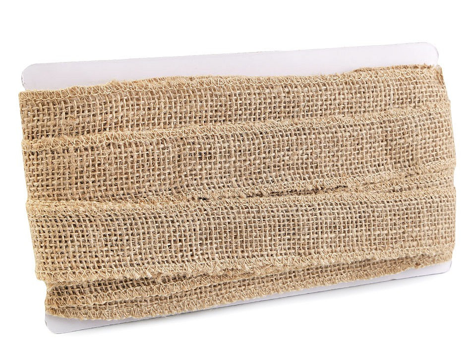 Jutová stuha má obšité okraje. Je pevná, netřepí se a s krajkou vytvoří zajímavou kombinaci.