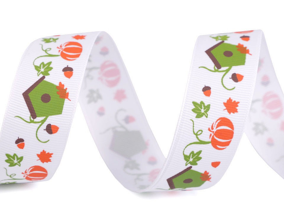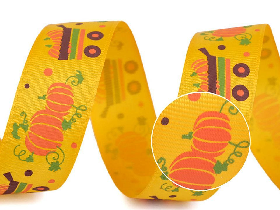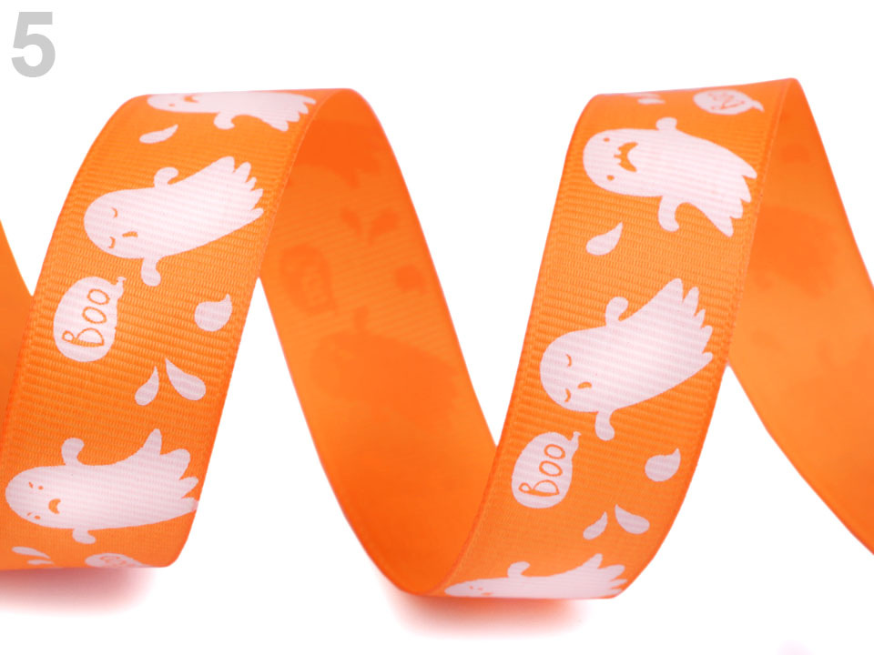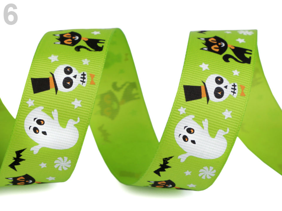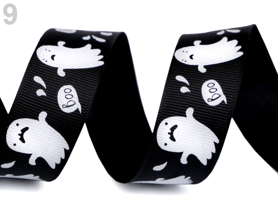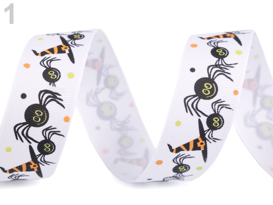 Rypsovou stuhu s halloweenským designem oceníte při aranžování. Potisk je jednostranný.