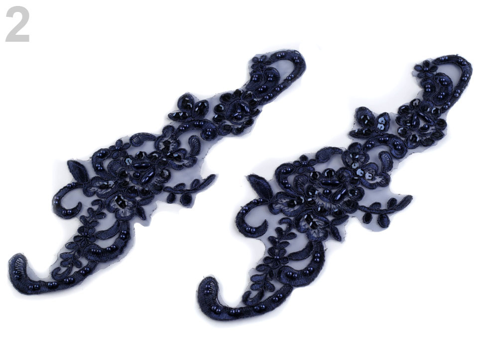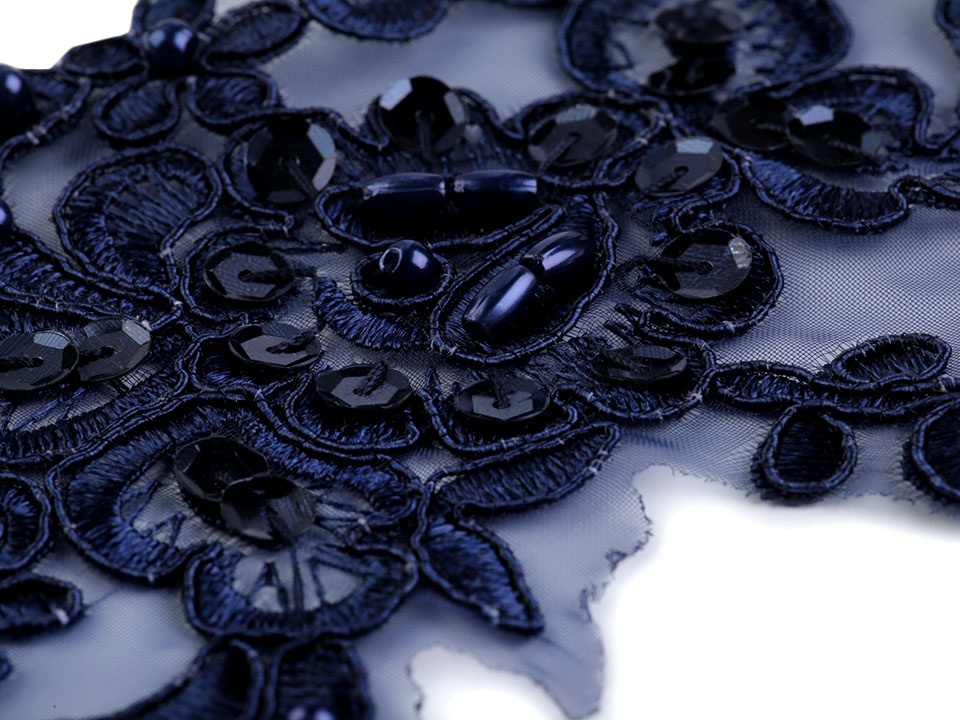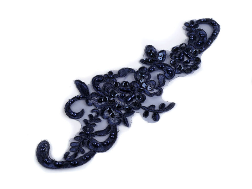Monofilová vsadka s květinovým designem působí elegantně. Je navíc ozdobena flitry a perlami ve stejné barvě jako vsadka.