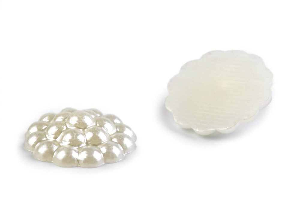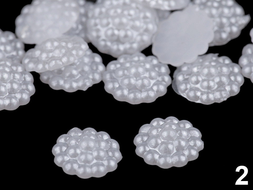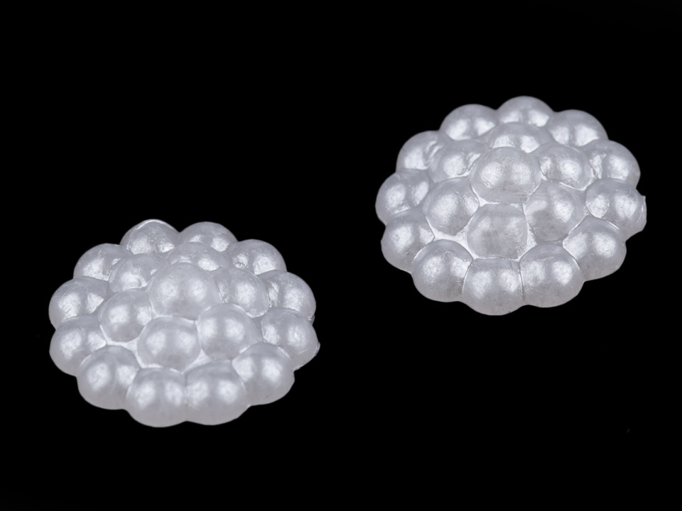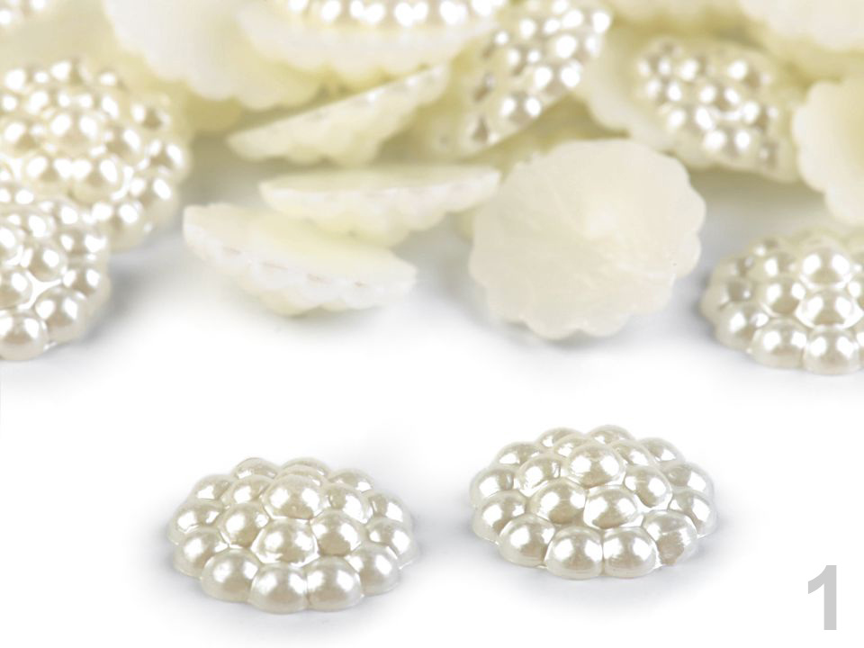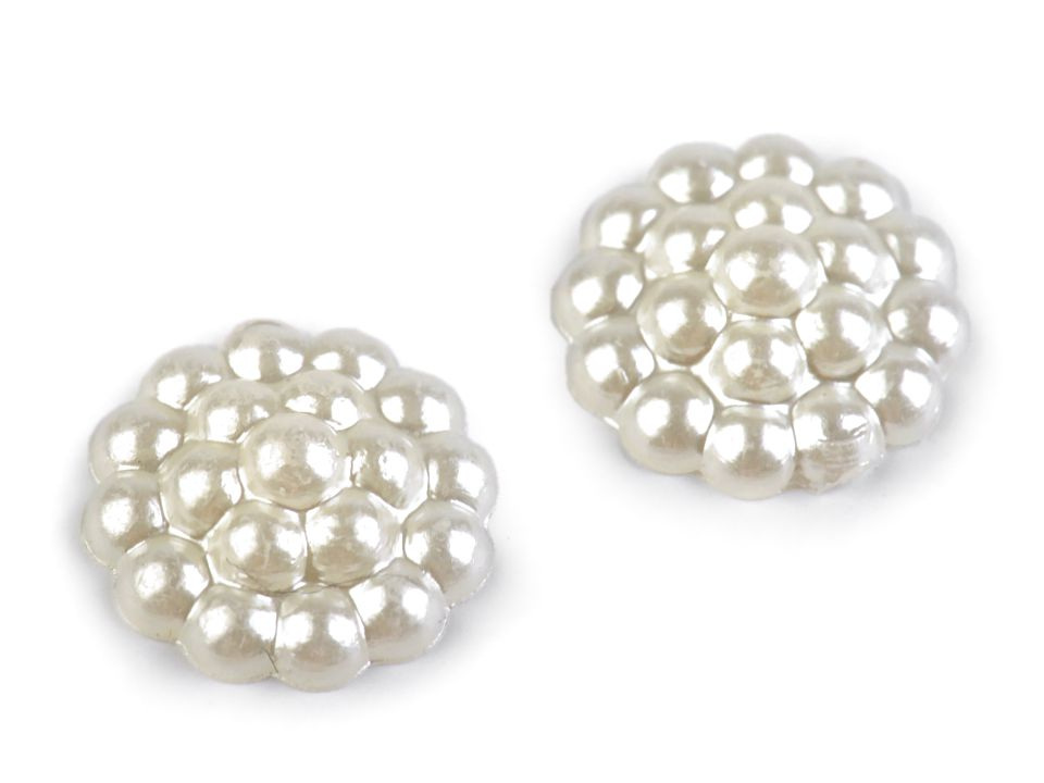 Kulatá ozdoba vynikne na středech textilních květů, svatebních vývazcích a jiných textilních výrobcích. Používají se pro tvorbu šperků, zdobení bot, scrapbooking a zdobení různých předmětů např. přání, pozvánek, foto rámečků, alb či svatebních oznámení. Spodní část je plochá. Doporučujeme je lepit na suchý, hladký a pevný povrch.