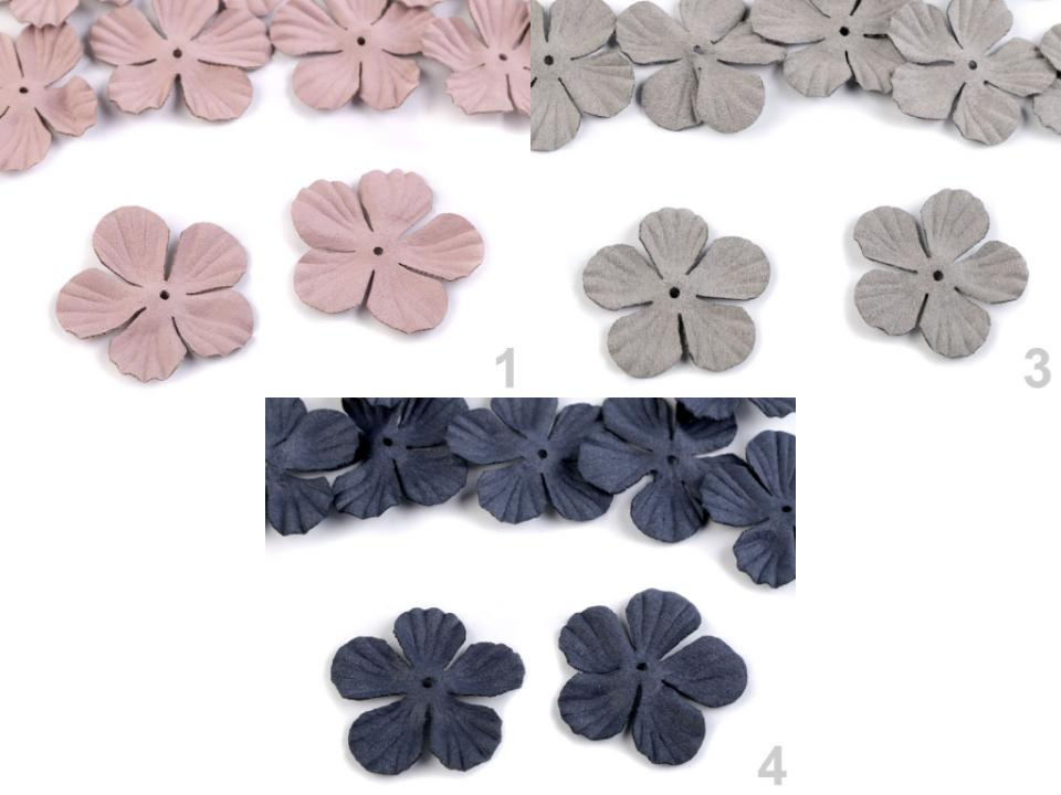Použití: Květy jsou vhodné k přišití i nalepení. Skvěle vypadají na oblečení a módních doplňcích jako jsou brože, čelenky do vlasů, klobouky, tašky apod. Využijete je nejen jako našívací ozdobu, ale jako dekorace přáníček, jmenovek na stůl apod.