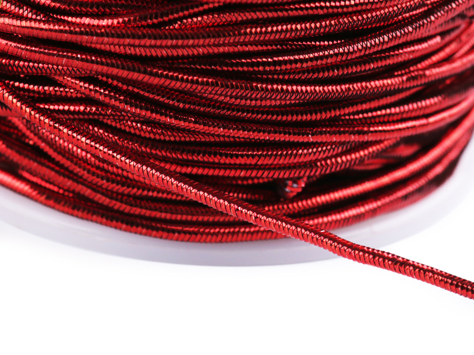 Kulatá pruženka je zdobena kovovým vláknem. Nejčastěji se používá v oděvním průmyslu.