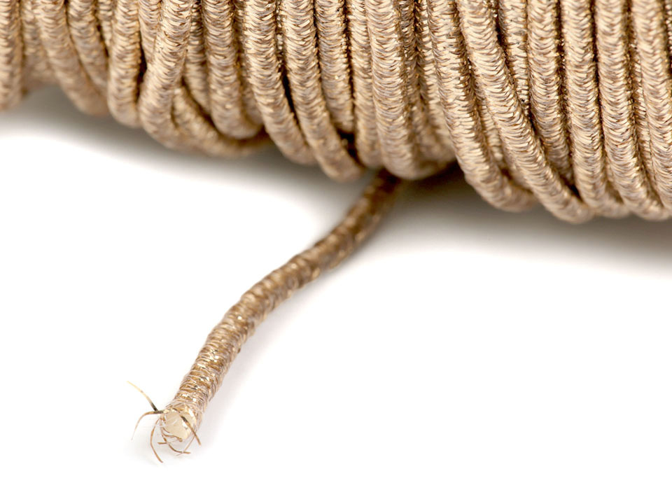 Kulatá pruženka je zdobena kovovým vláknem. Nejčastěji se používá v oděvním průmyslu.