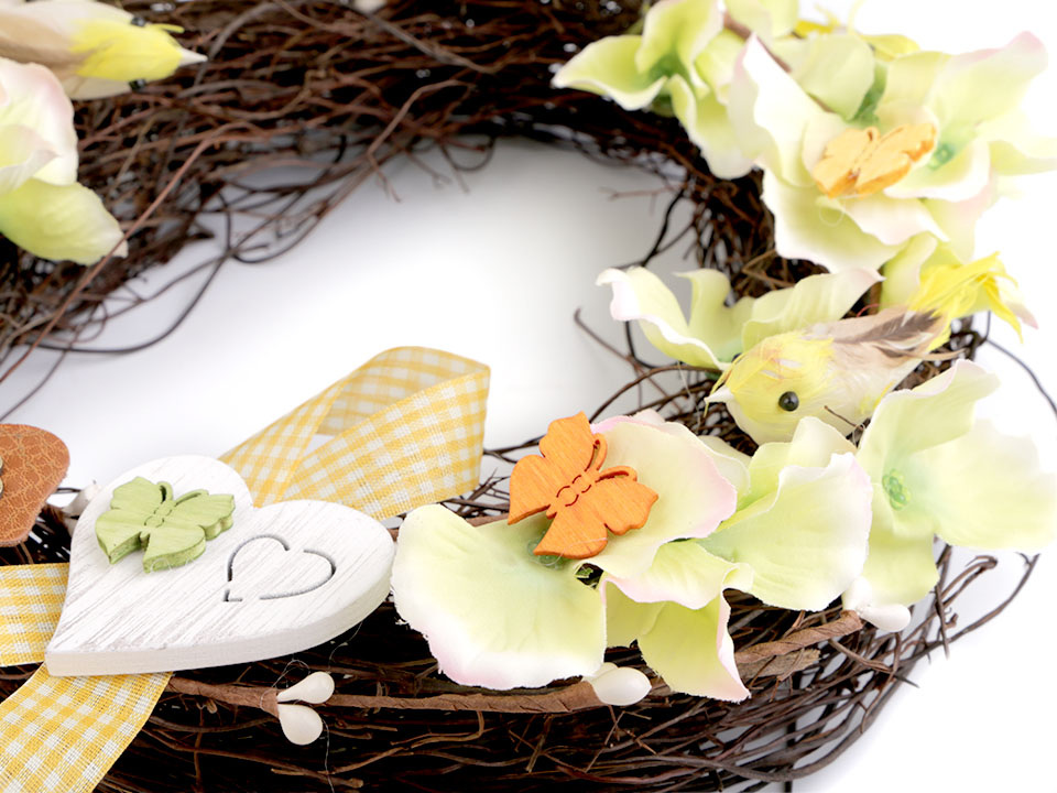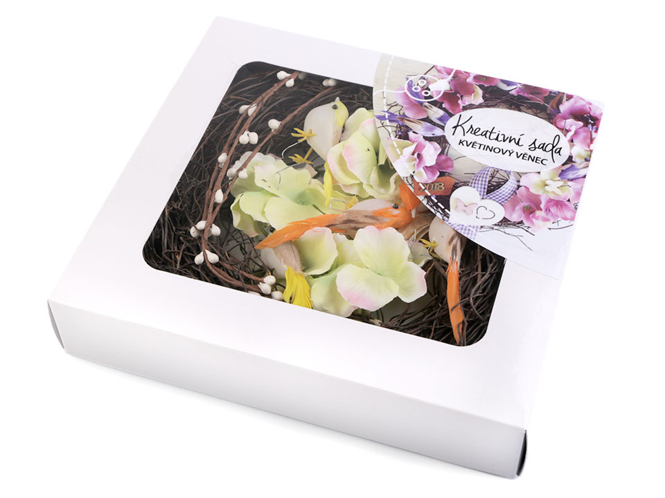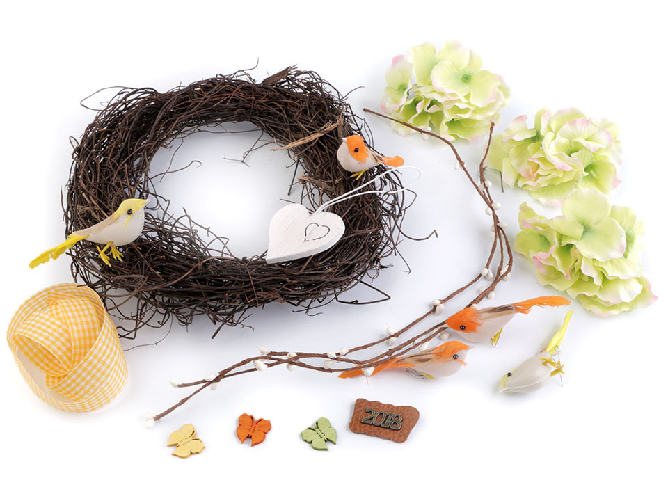 S kreativní sadou si můžete vyrobit vlastní květinový věnec s ptáčky. Je sestavená ze všech potřebných komponentů z našeho obchodu, které k sobě dokonale ladí. Věnec se hodí k zavěšení na dveře i jako nádherná dekorace stolu, věříme, že vás jeho výroba bude bavit.