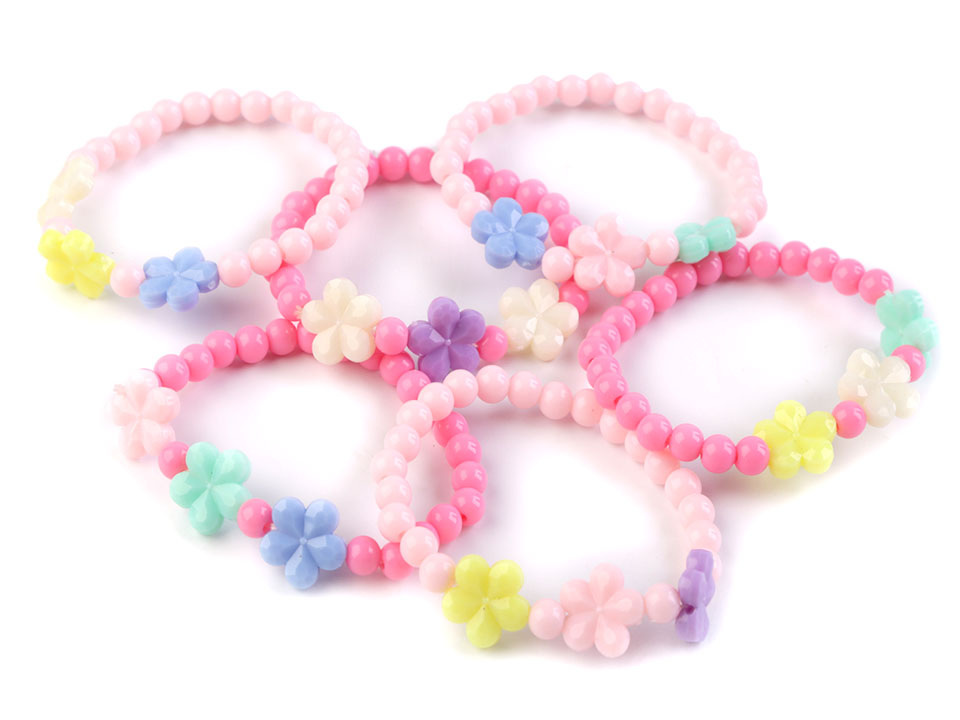 Mix barevných květinových náramků, které potěší všechny malé parádnice.