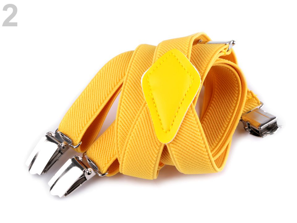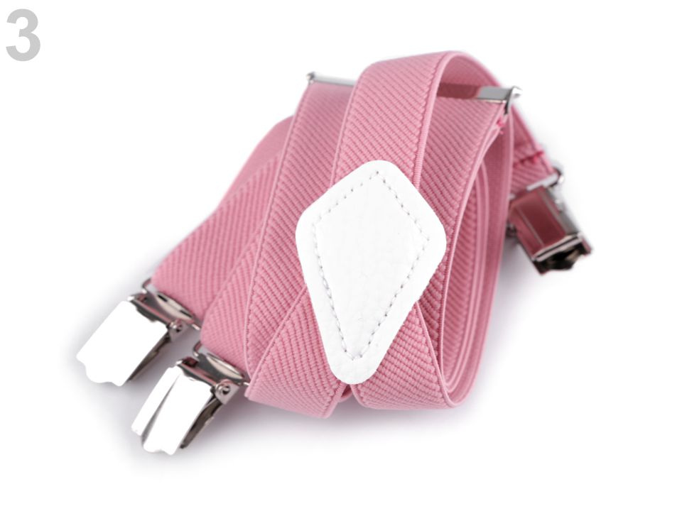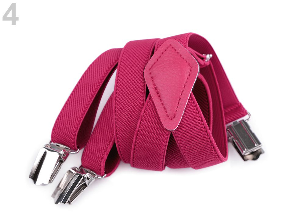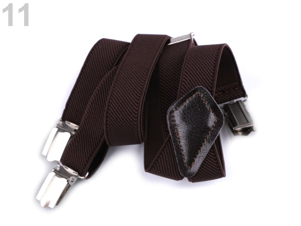 Jsou kvalitní české výroby. Ke kalhotám či sukni se připevňují pomocí kovových žabek - dvě vpředu a jedna vzadu. Mají šířku pruženky 2 cm a délku 95 cm, tvar Y.