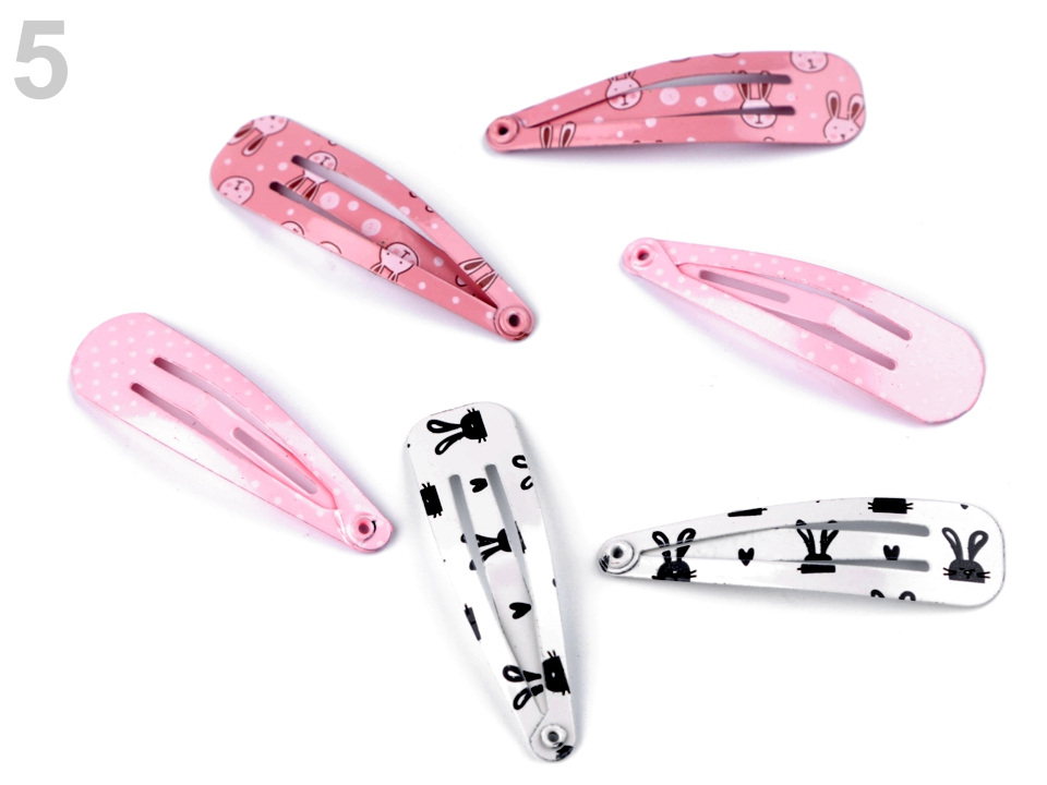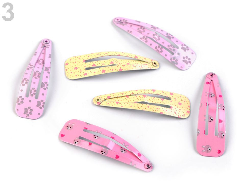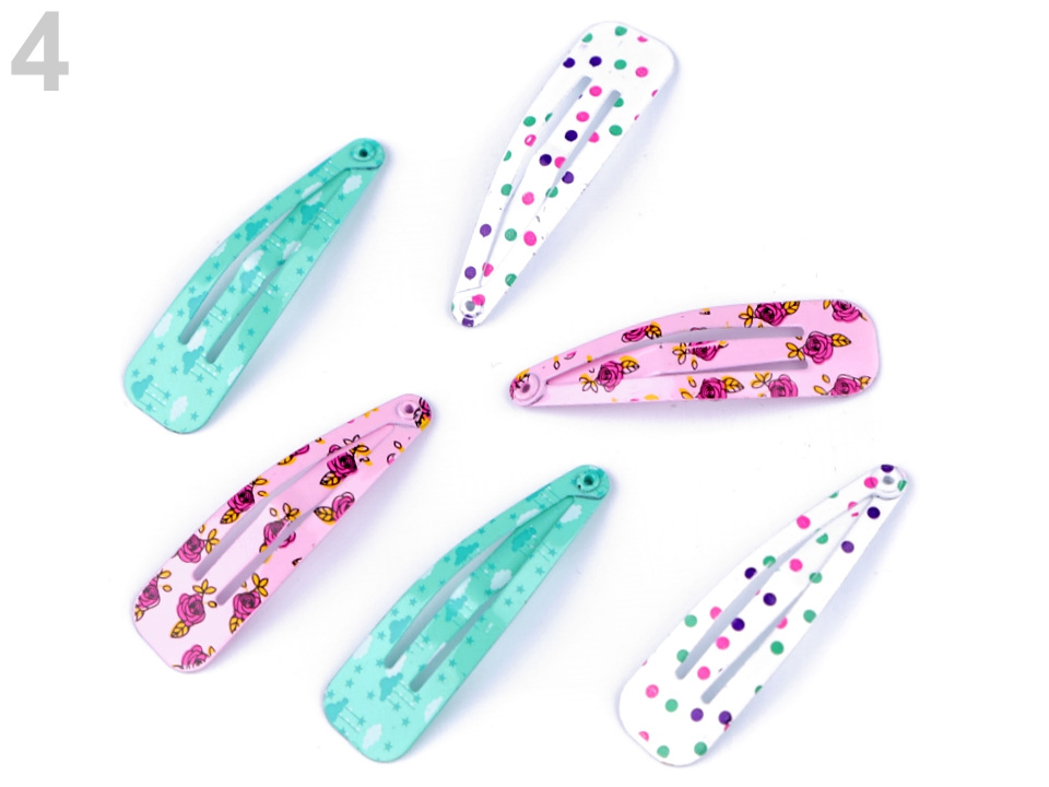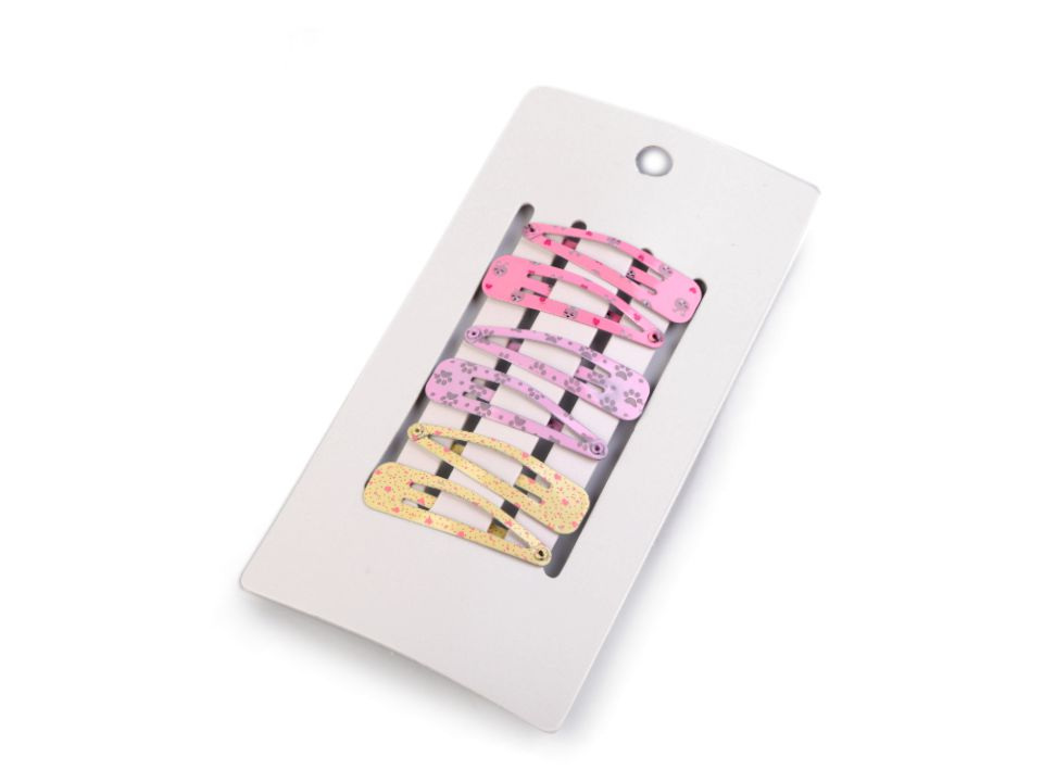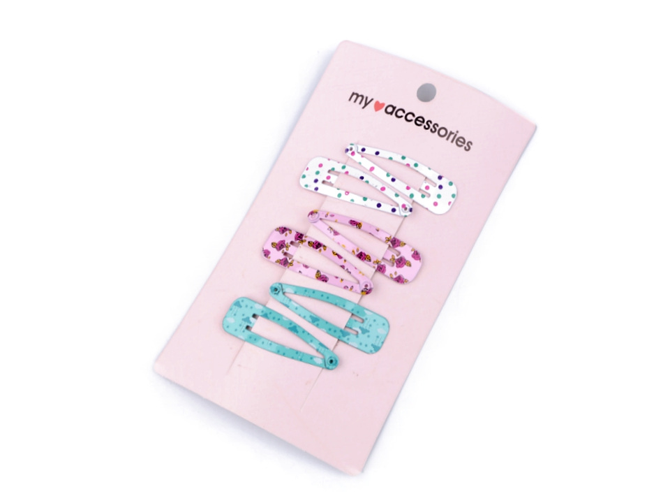 Sada malých sponek s potiskem je určená především pro jemné dětské vlásky. Udrží i tenký pramínek vlasů. Pukačky mají výhodu, že dobře drží a přitom netlačí. Jsou vyrobené z kvalitního materiálu, který dlouho drží svůj tvar, funkčnost i barvy.