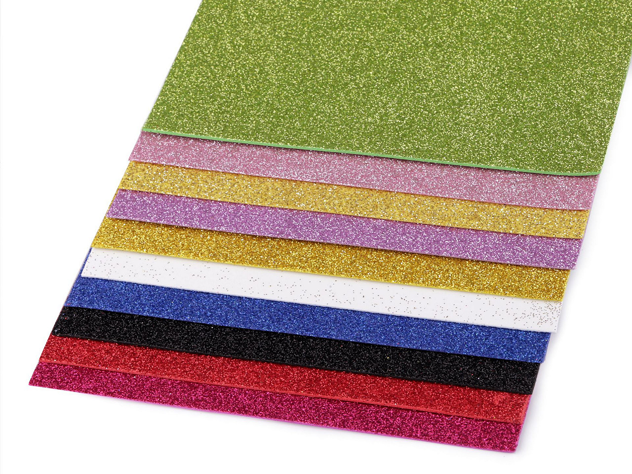 Pěnová guma Moosgummi s glitry přímo vybízí ke tvoření třpytivých dekorací.