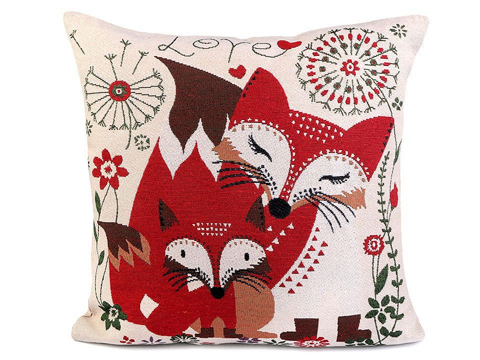 Povlak na polštář s roztomilými liškami vnese do vašeho bytu hravost. Svým zpracováním napodobuje gobelínový vzor. Motiv je jednostranný a díky zipu se povlak jednoduše zapíná.
