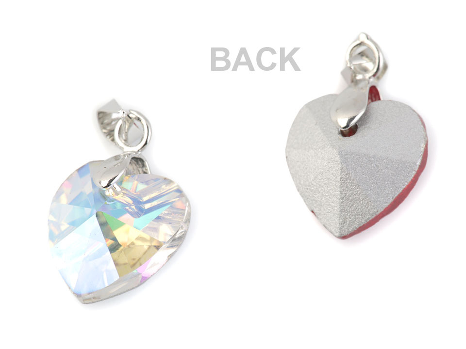Přívěsek srdce z broušeného skla je velice okouzlující. Ať se na něj podíváte z kteréhokoli úhlu, vždy bude vypadat luxusně a probouzet fantazii. Má šlupnu na zavěšení, kterou můžete provléci vhodný návlekový materiál - řetízek, šňůrku nebo kůži. Zadní strana má pokov, jenž umocňuje lesk a třpyt přední strany.