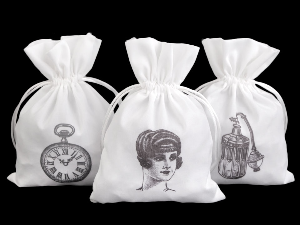 Dárkový pytlík má jedinečný vzhled. Z obou stran ho zdobí vintage obrázek. Do pytlíku můžete zabalit drobné dárky pro své blízké, například náramek či hodinky. A dámy jistě potěší nějaká kosmetika.