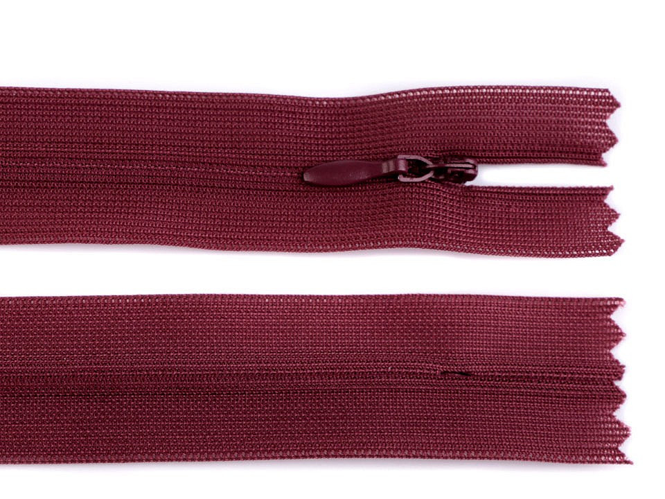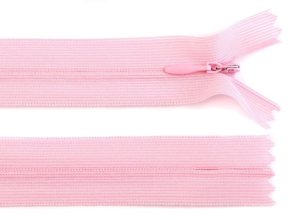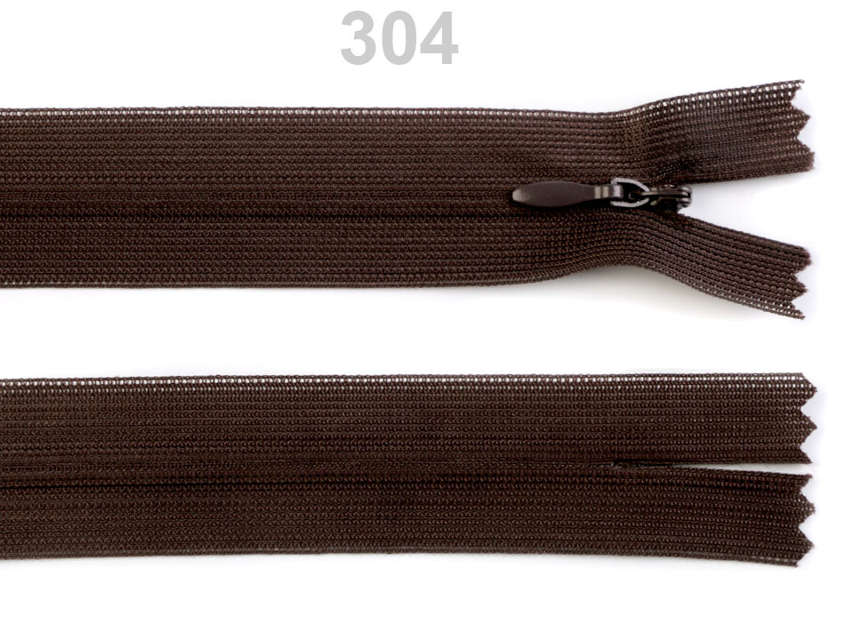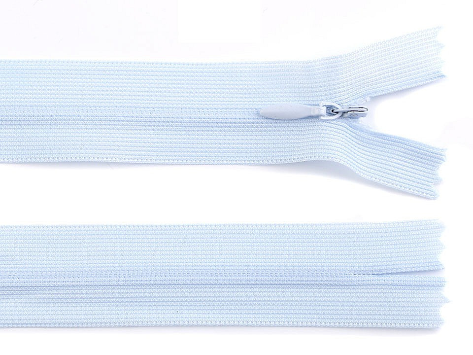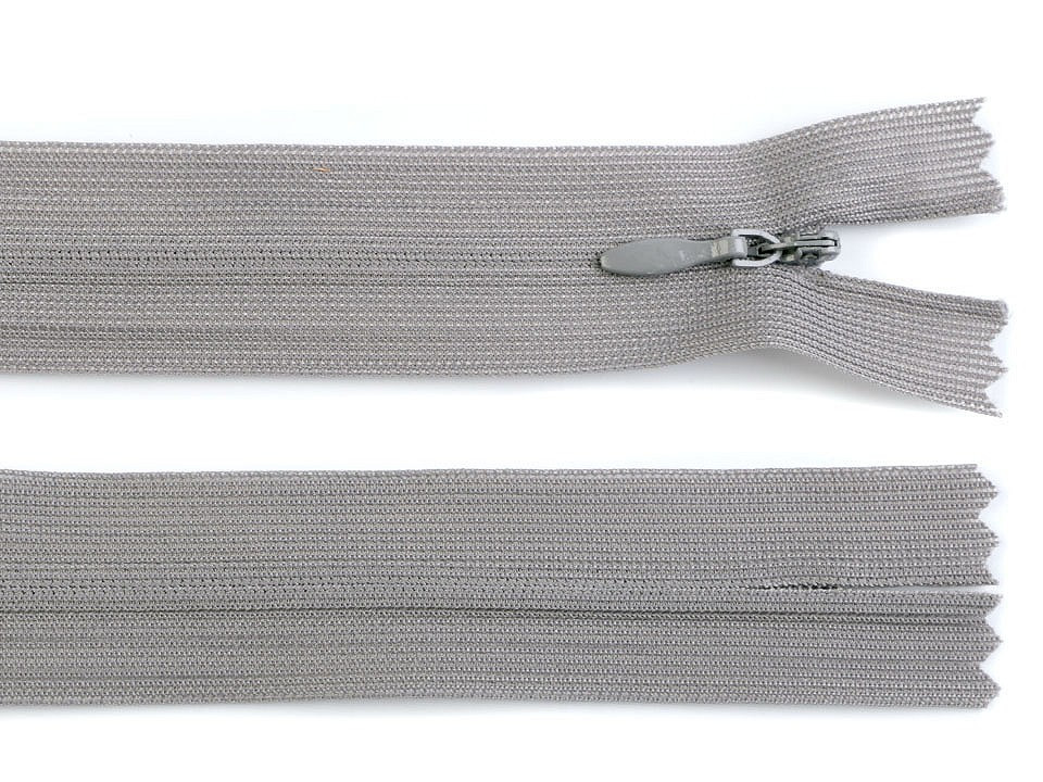 Spirálový nedělitelný zip je po našití prakticky neviditelný. Má zakrytou spirálu.