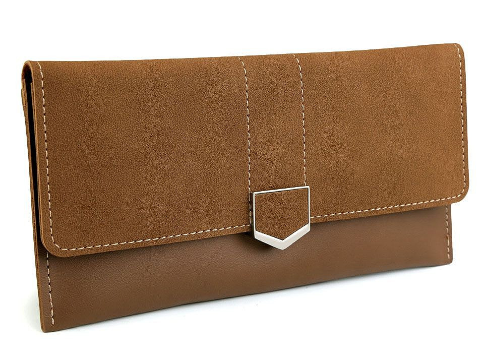 Elegantní dámská peněženka z eko kůže má velice kvalitní provedení. Díky decentnímu minimalistickému designu ji využijete i jako pouzdro (malé ploché psaníčko), do kterého můžete uschovat kromě bankovek a karet třeba mobil. Peněženka je velice příjemná na dotek, horní klopa je k nerozeznání od pravé broušené kůže.