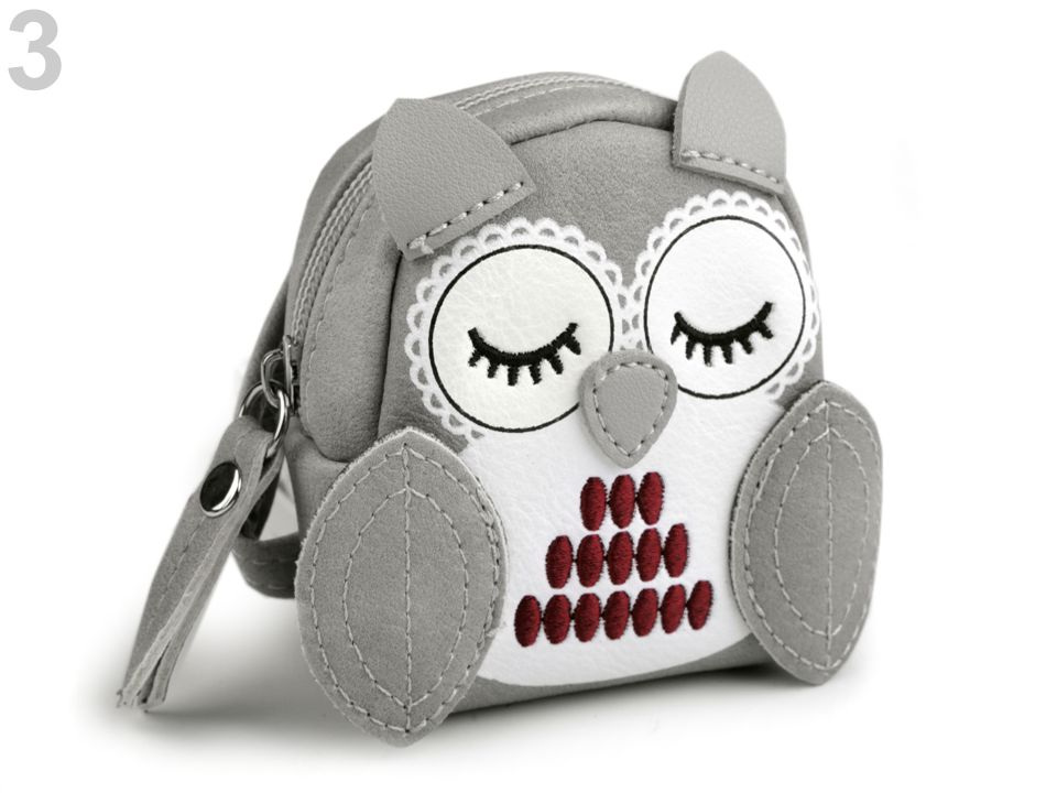 Zapíná se na zip, má praktický kroužek na klíče a otevírací karabinu. Díky karabiny můžete sovu připevnit na tašku, kabelku, batoh apod.