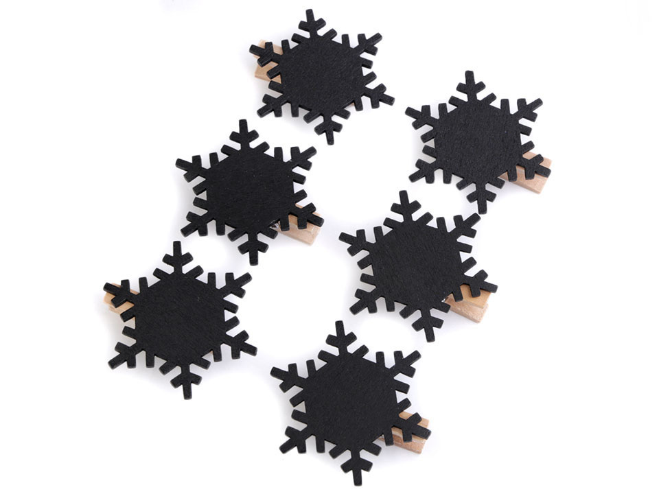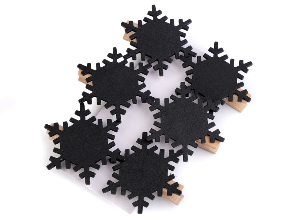 Tabulky ve tvaru vločky využijete na vytvoření adventního kalendáře. Jsou vhodné také jako jmenovky na dárky či sváteční stůl nebo cenovky v obchodě. Díky kolíčku na zadní straně je lehce upevníte. Na psaní můžete použít křídy, které v případě potřeby jednoduše smyjete vlhkým hadříkem. Tabulky jsou natřené tabulovou barvou.