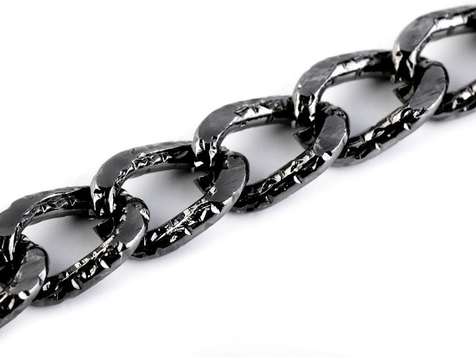 Řetízek je zajímavým svým povrchem, který zdobí reliéf. Očka jsou oválná. Řetěz nemá žádné zakončovací karabinky.