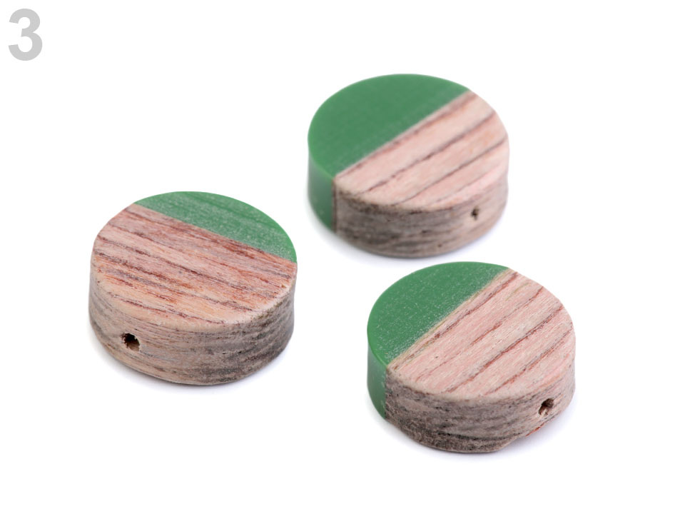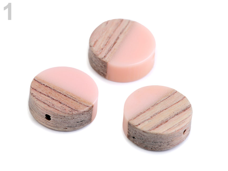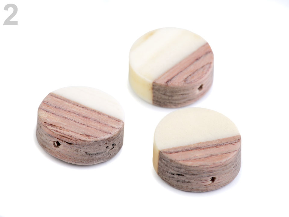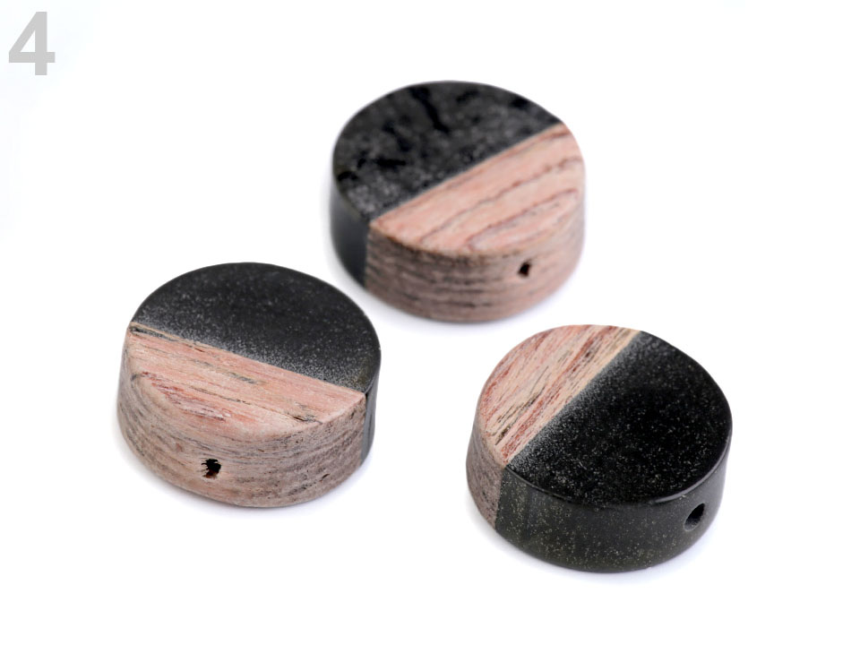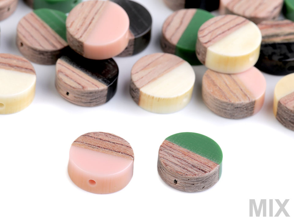 Dřevěné placaté korálky kombinované s pryskyřicí jsou velice elegantní.