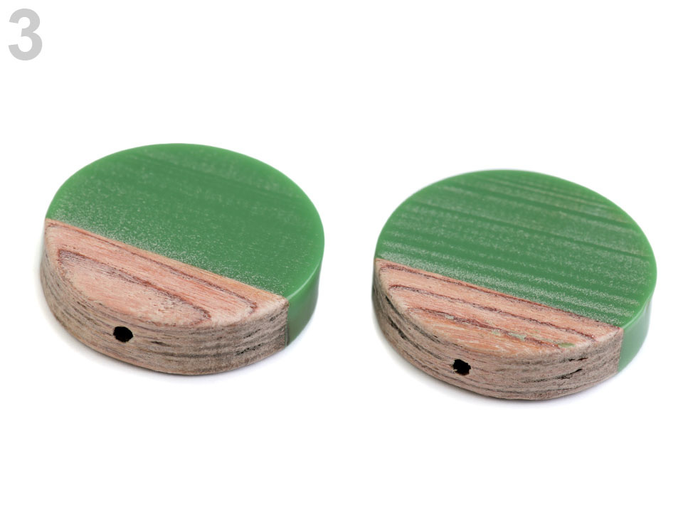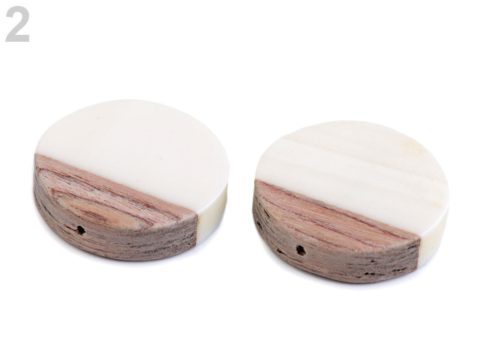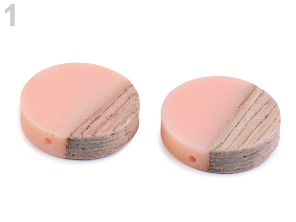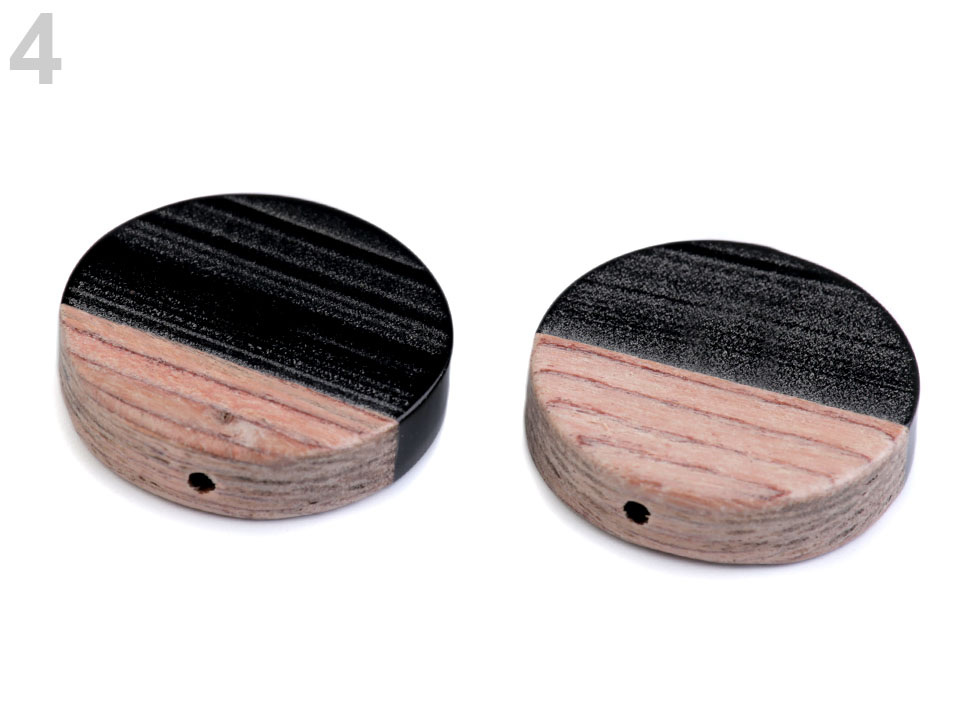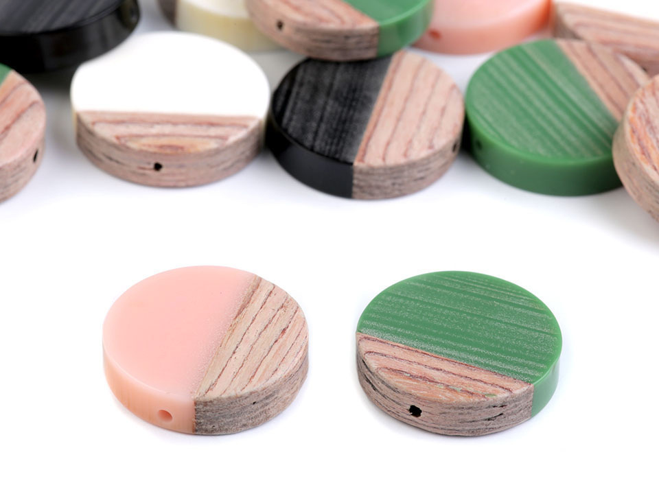Dřevěné placaté korálky kombinované s pryskyřicí vypadají velice elegantně.
