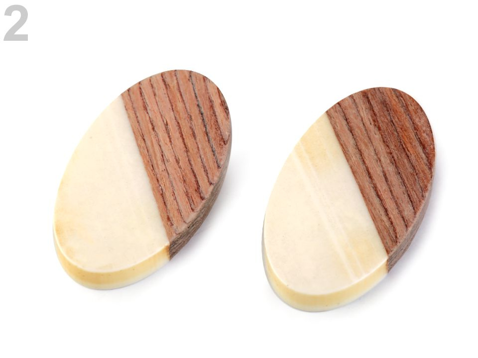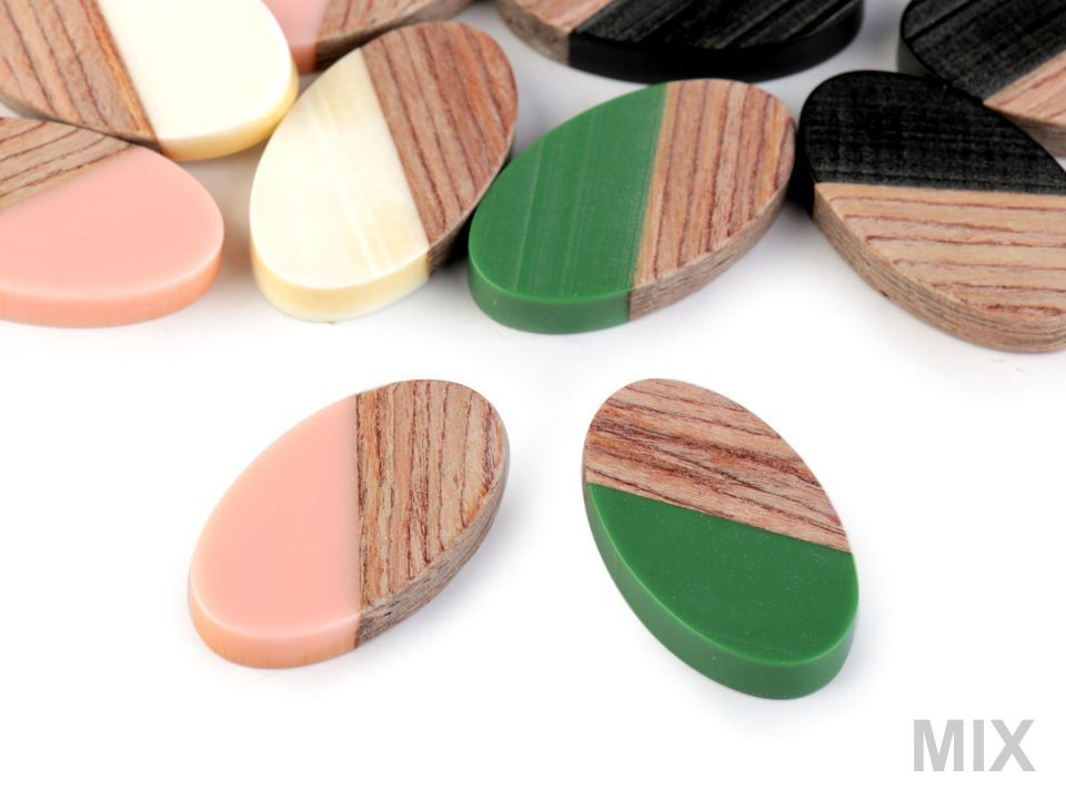 Dřevěný oválný přívěsek kombinovaný s pryskyřicí vypadá velice elegantně.