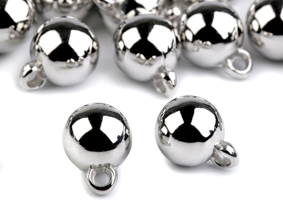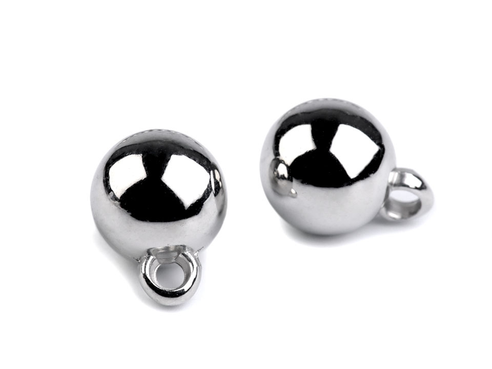 Plastový přívěsek kulička svým tvarem připomíná vánoční baňku.