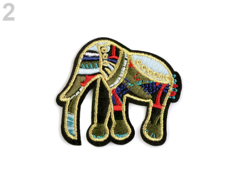 Nažehlovačka se slonem je zdobena kovovým vláknem.