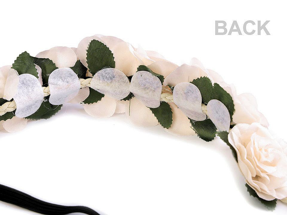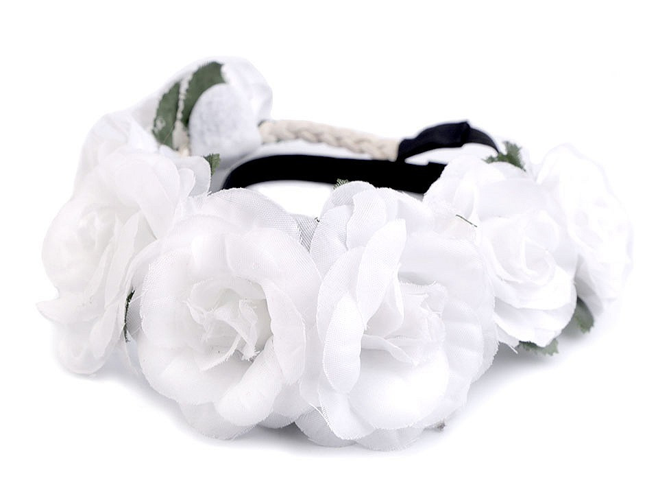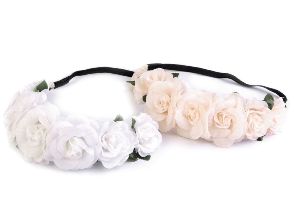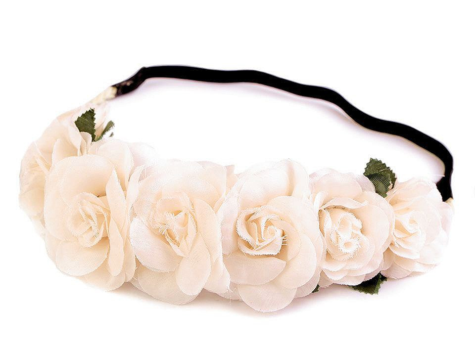 Květinová čelenka s růžemi romanticky ozdobí váš účes. Ať už budete mít vlasy rozpuštěné či zapletené, budete vypadat křehce. Čelenku využijí i dívky, které čeká První svaté přijímání, neměla by chybět v účesu žádné družičky.