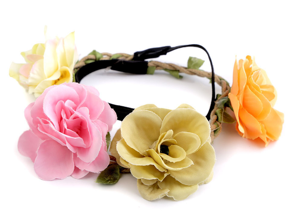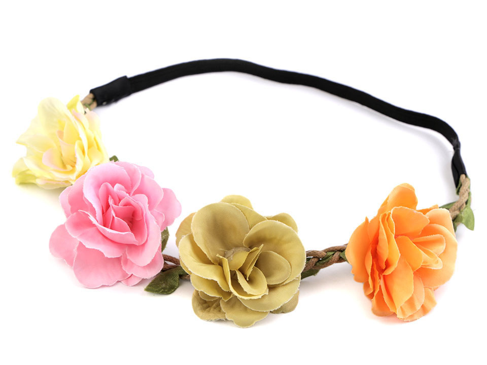 Bohémská čelenka s barevnými květy romanticky ozdobí váš účes.