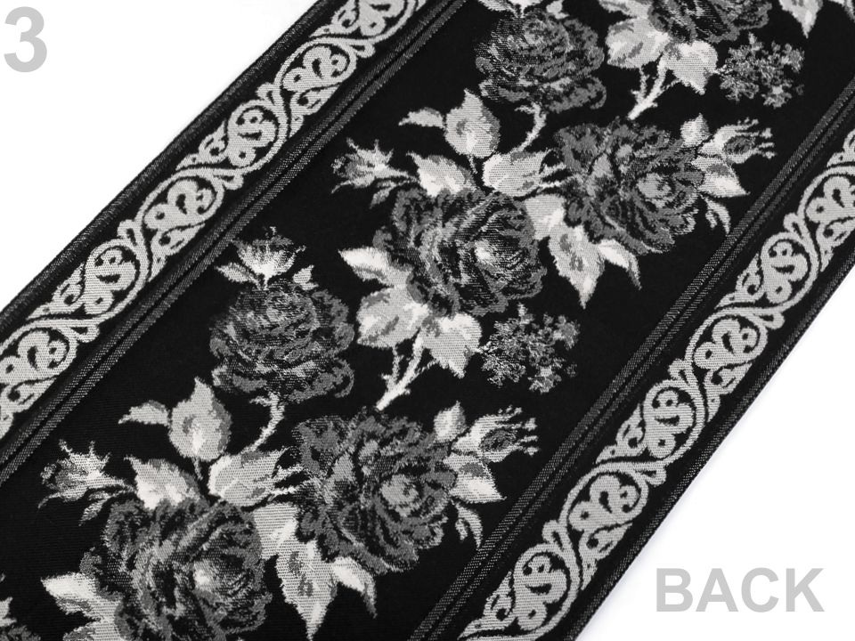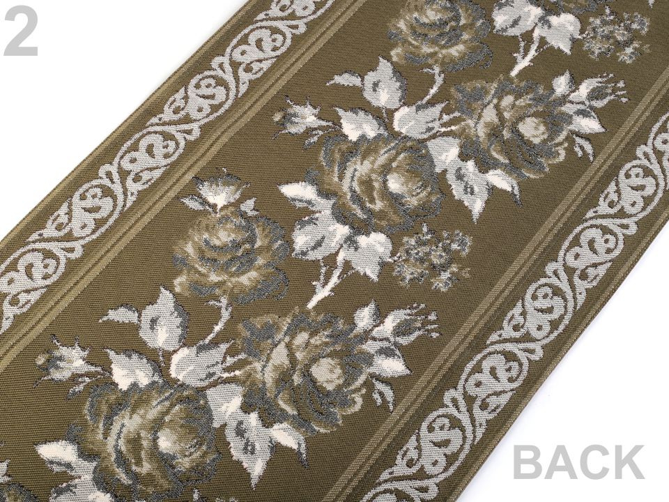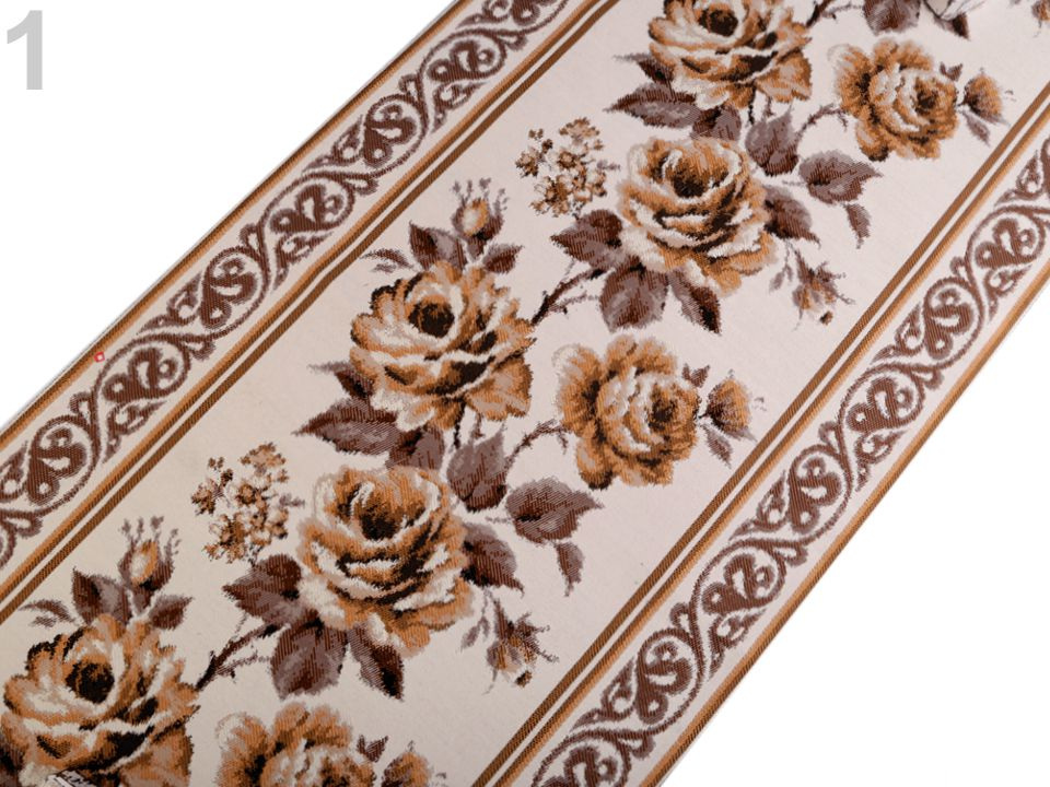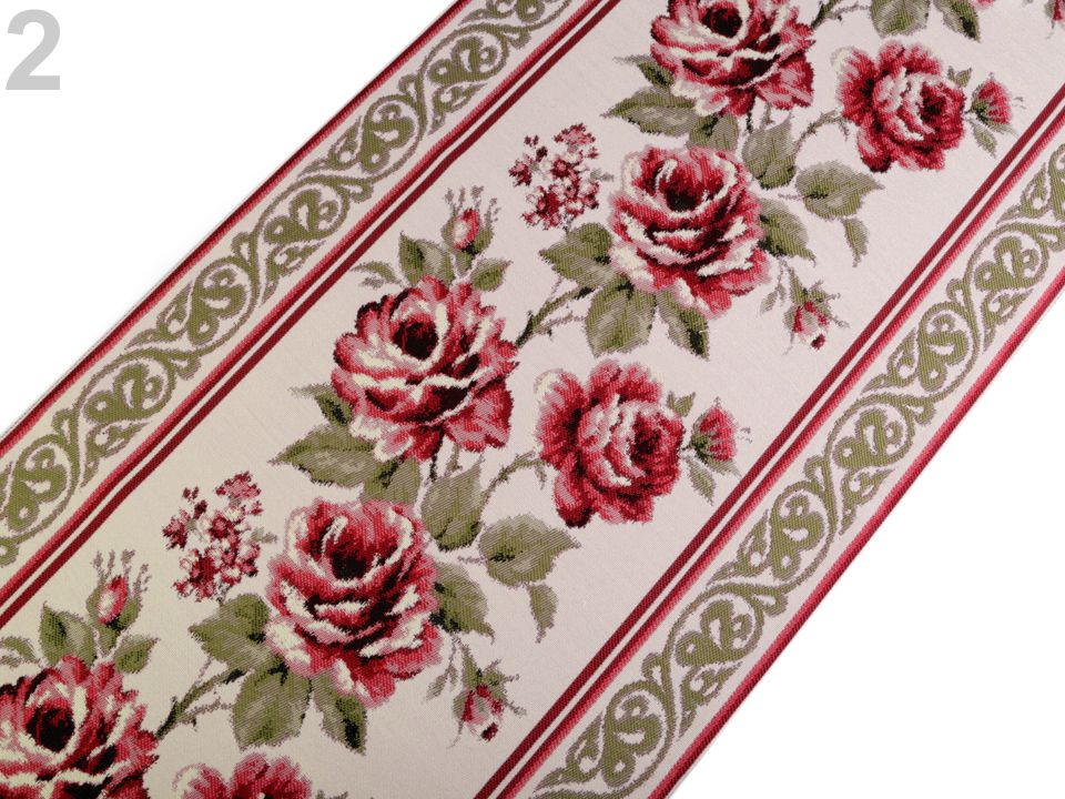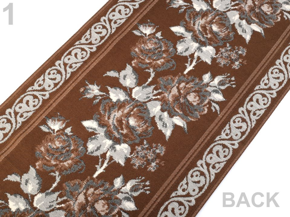 Široká metráž zaujme nejen svým květinovým motivem, ale i okraji s ornamenty. Zpracováním připomíná gobelín. Můžete ji použít oboustranně.