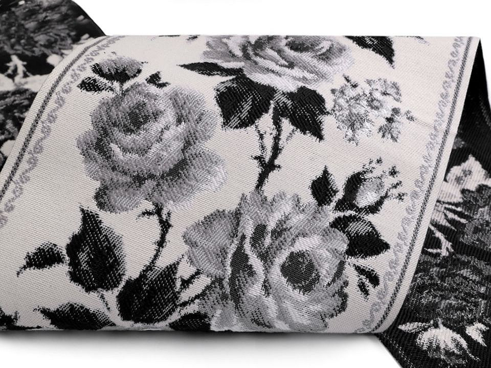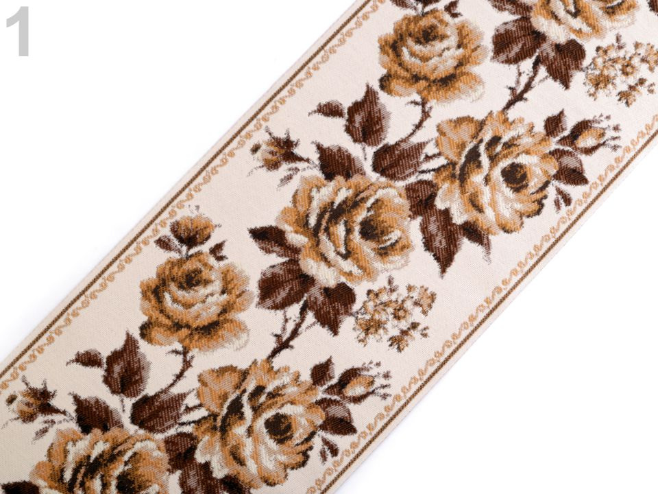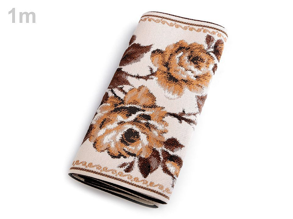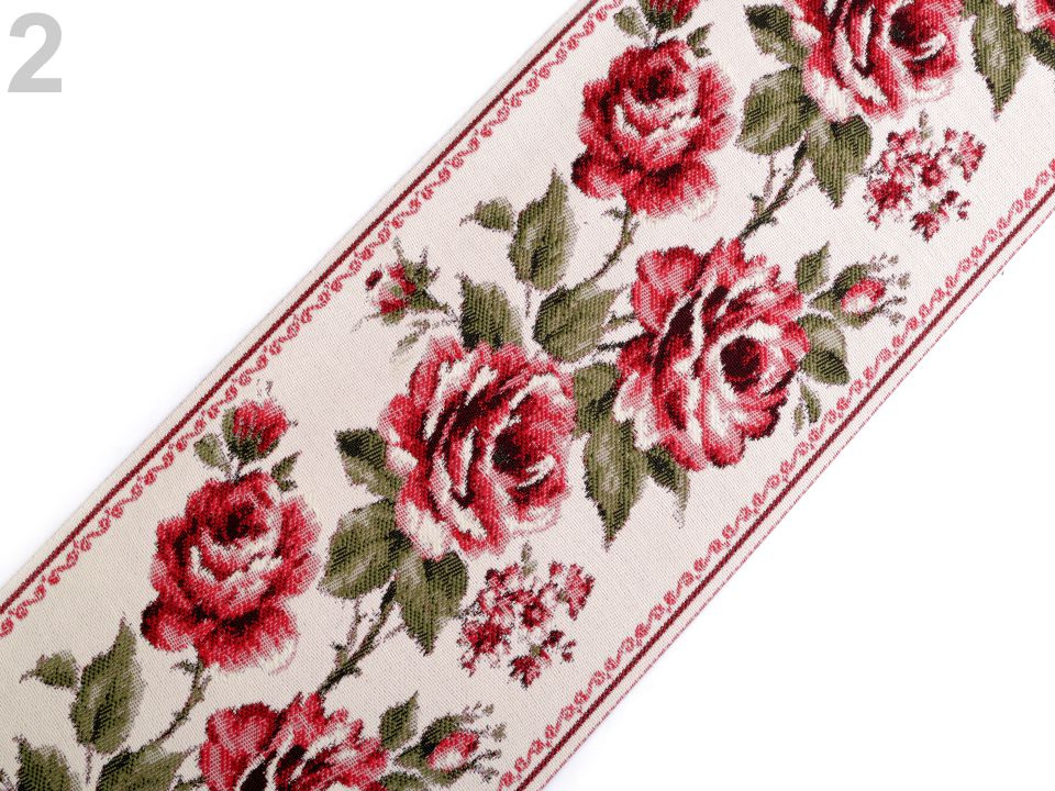 Široká metráž s květinovým motivem, zobrazujícím růže, je velmi populární. Zpracováním připomíná gobelín. Můžete ji použít oboustranně.