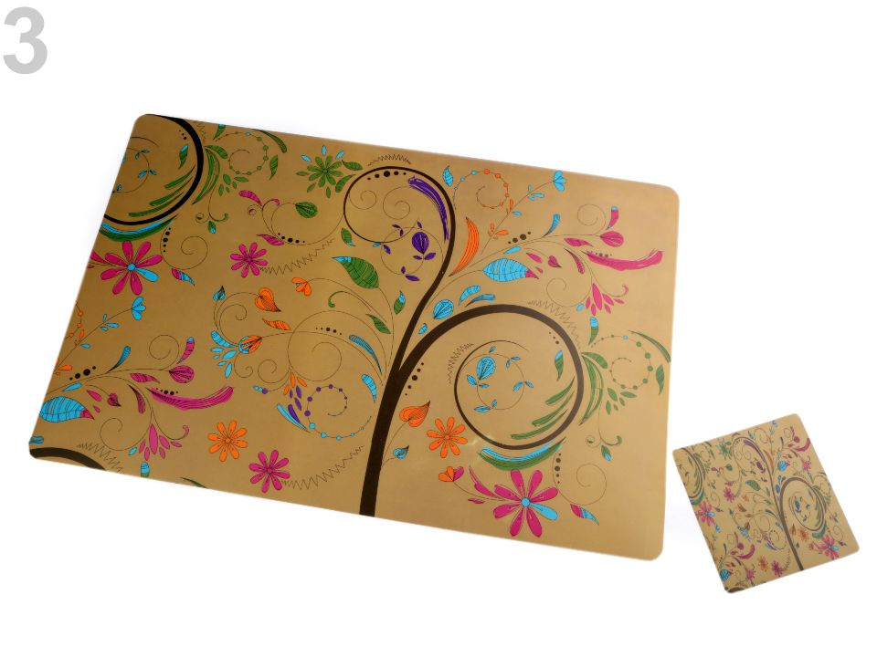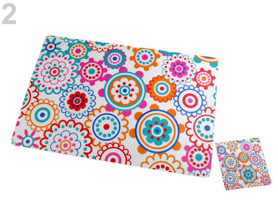 Sada prostírání a podtácků vás zaujme kombinací barev a jednostranným květinovým motivem. Skládá se z 6 ks prostírání a 6 ks podtácků ve stejném dekóru. Je vyrobena z měkkého plastu, proto ji lze lehce omýt.