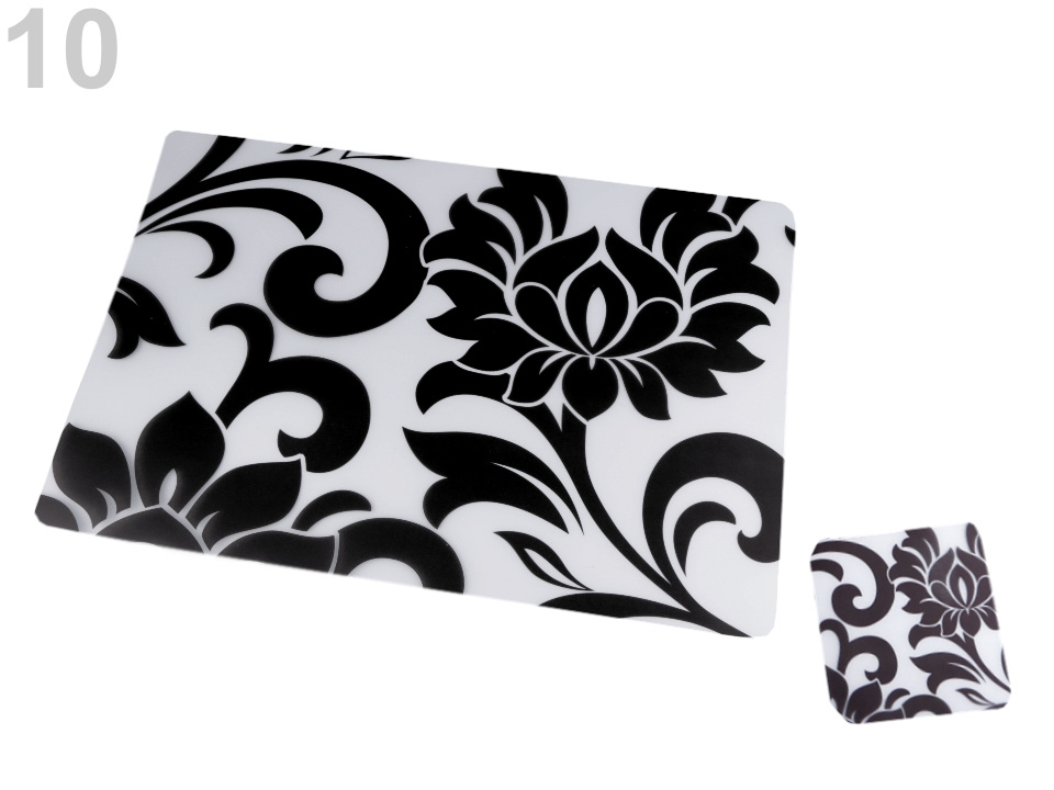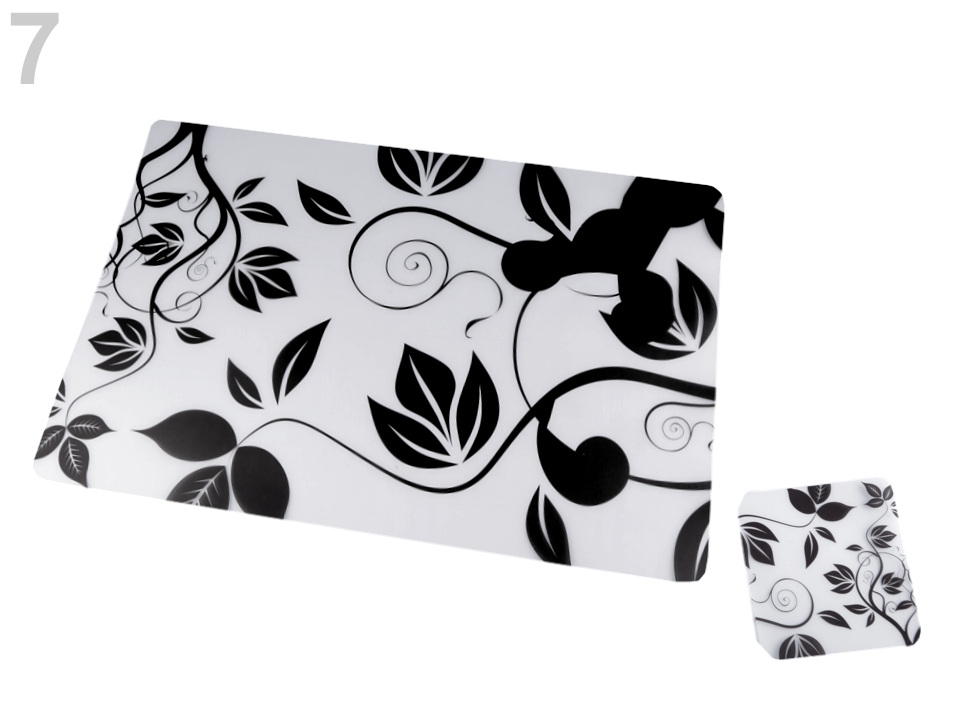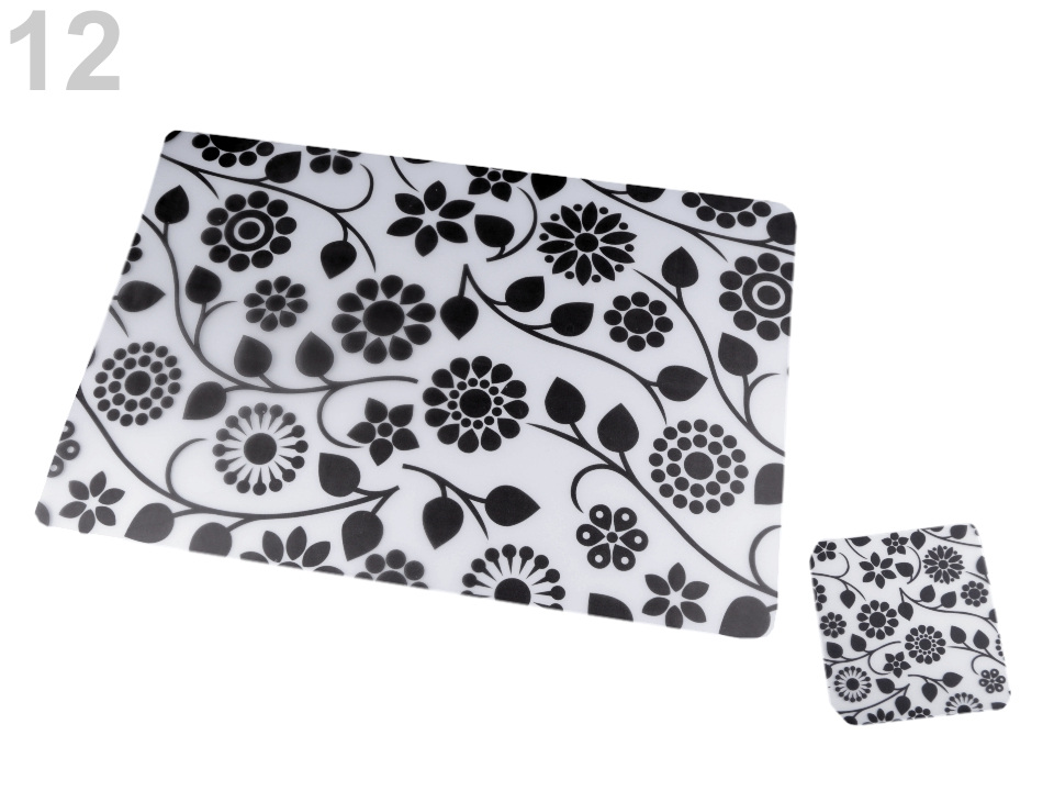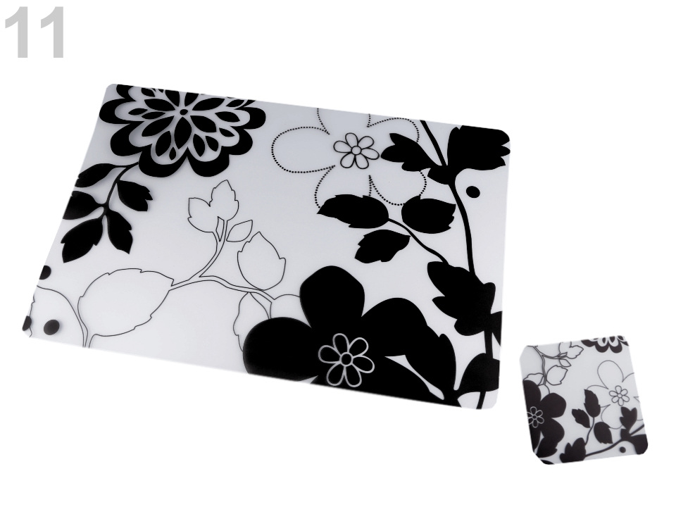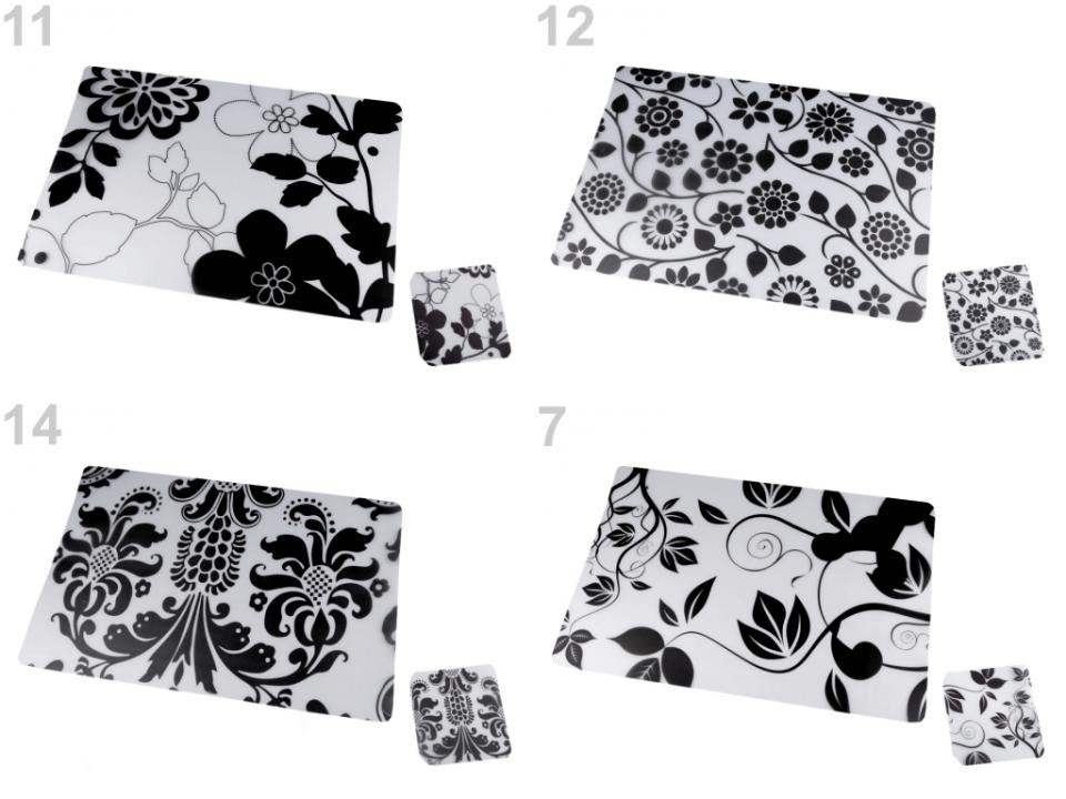 Sada průhledného prostírání s oboustranným květinovým motivem oživí váš jídelní stůl. Skládá se z 6 ks prostírání a 6 ks podtácků ve stejném dekóru. Prostírání je vyrobené z měkkého plastu, proto jej lze lehce omýt.