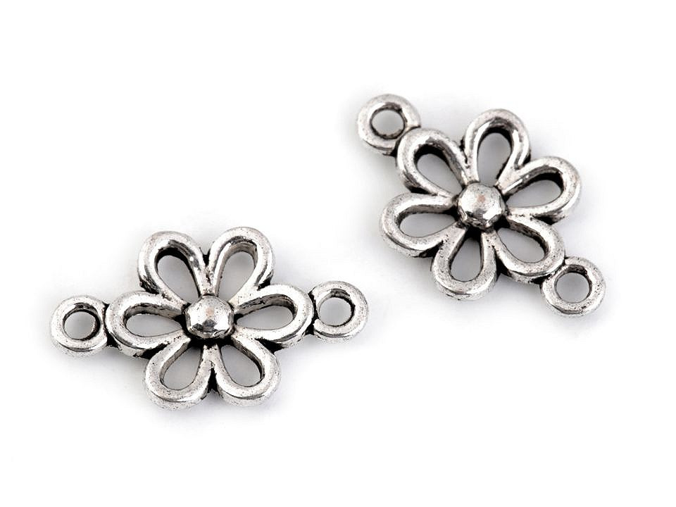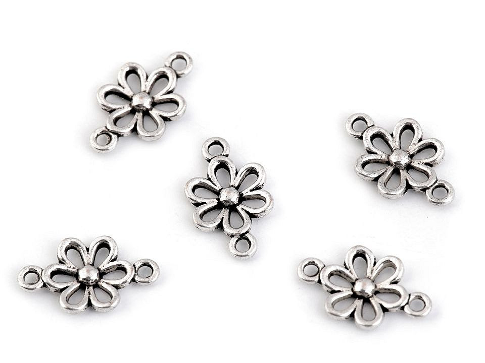 Našívací díl ve tvaru květu je mírně prohnutý. Má dvě očka, která slouží k přichycení.