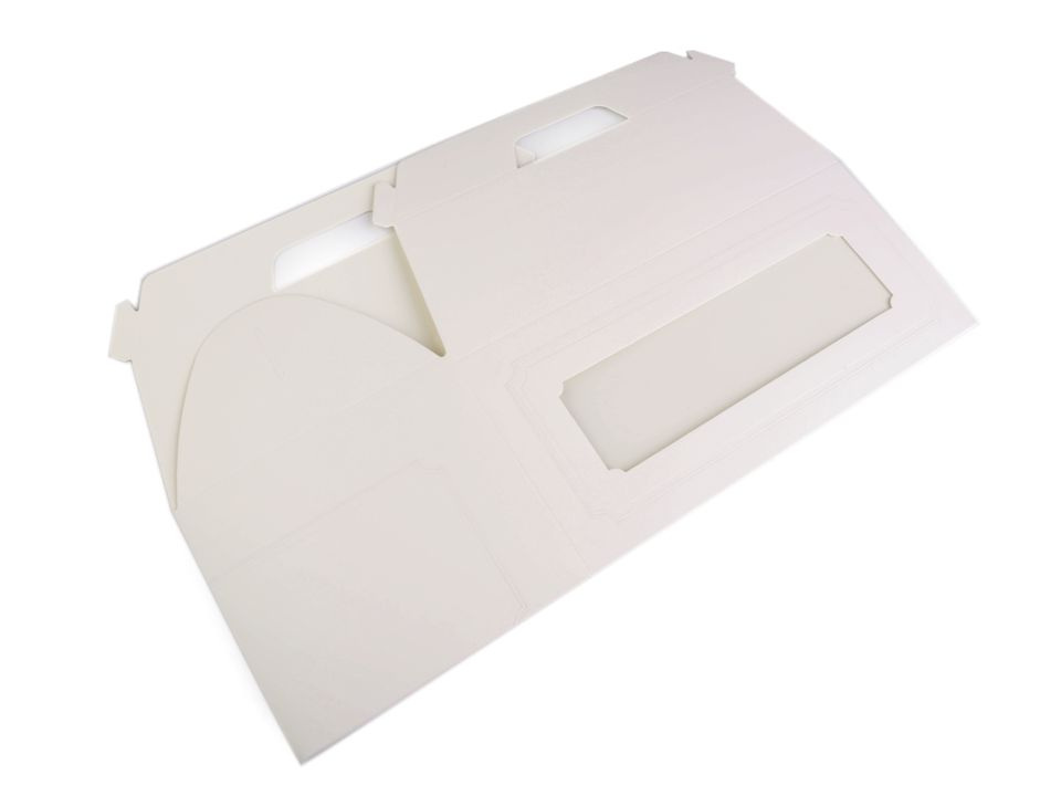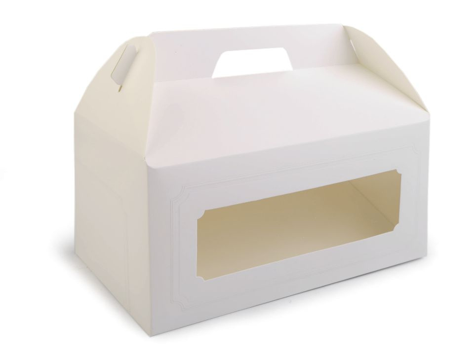 Papírová krabice se díky praktickému uchu a průhledu stala nezbytnou součástí výslužek ze svateb a různých oslav. Můžete ji dále dozdobit samolepkami, washi páskami apod.