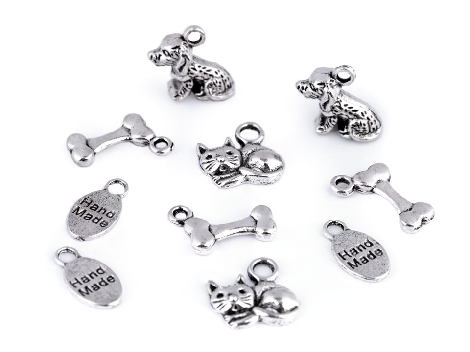 Mix kovových přívěsků je vhodný k dekoračním účelům a ke zdobení doplňků pro mazlíčky.