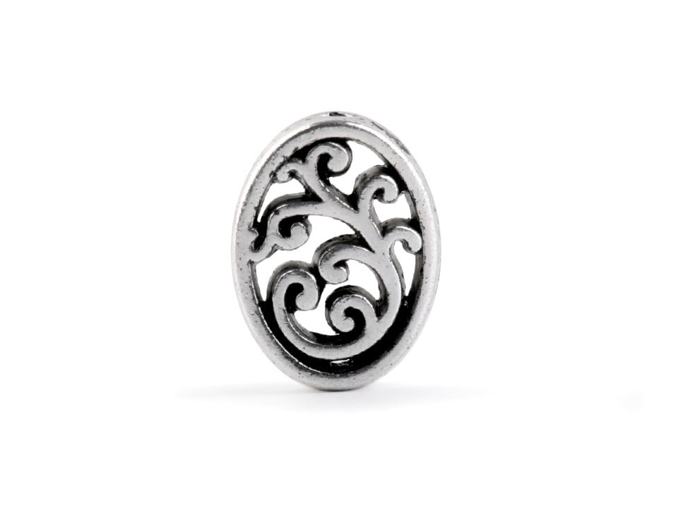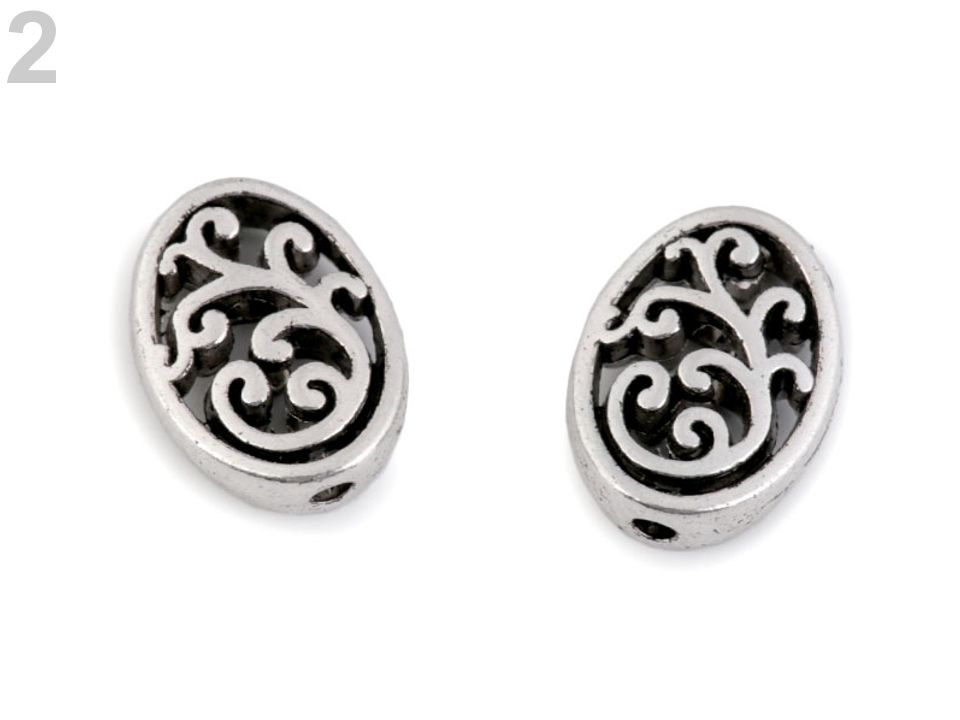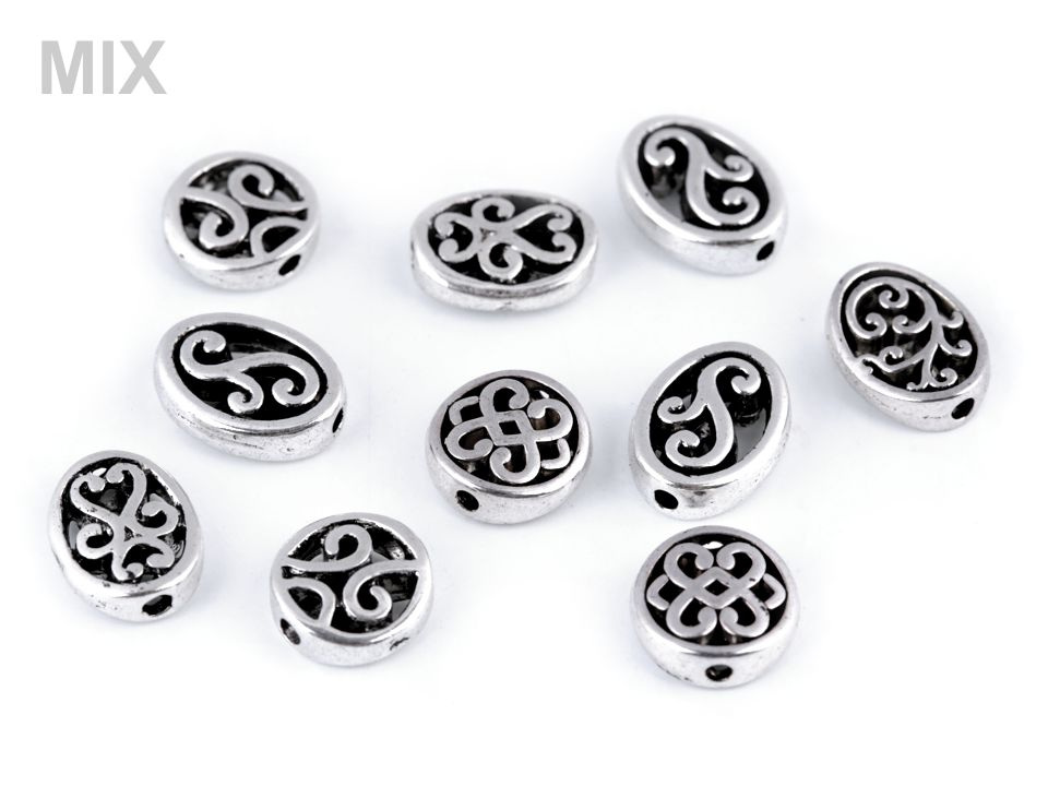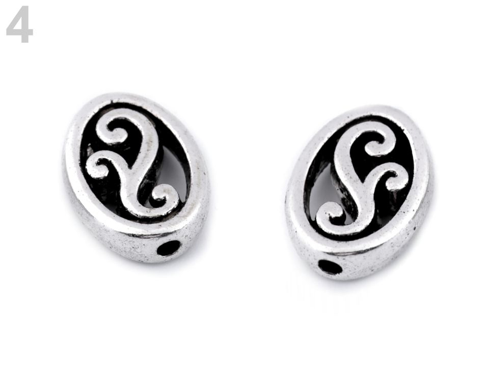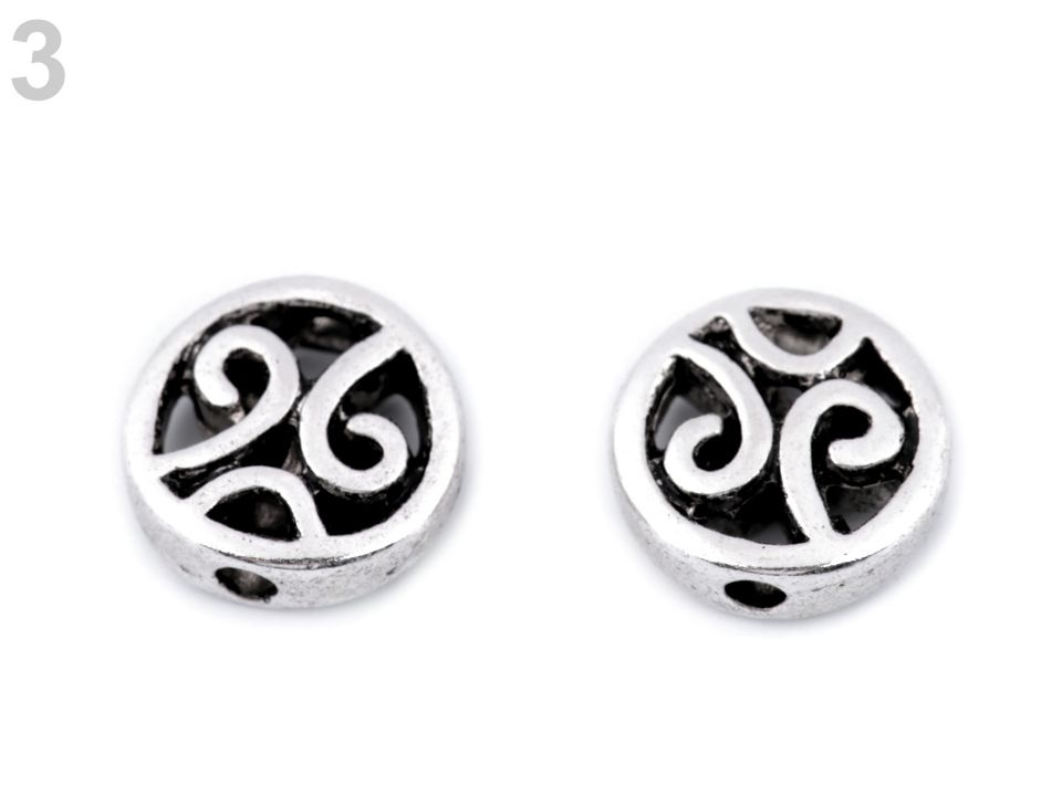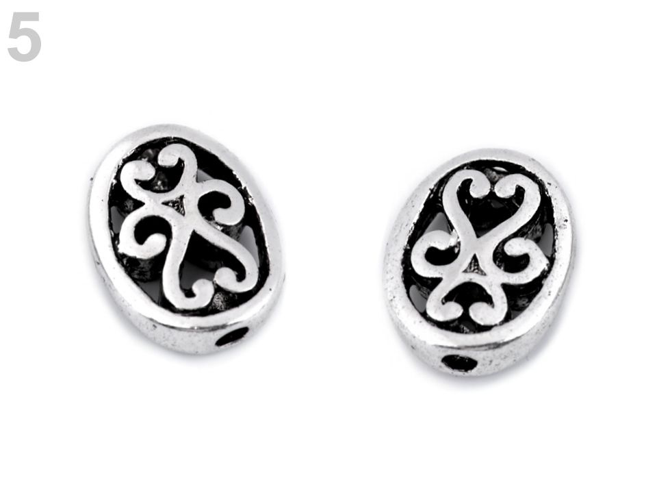 Kovový korálek s ornamenty můžete využít jako zajímavý a oživující prvek. Je vhodný jako koncovka na šňůrky.
