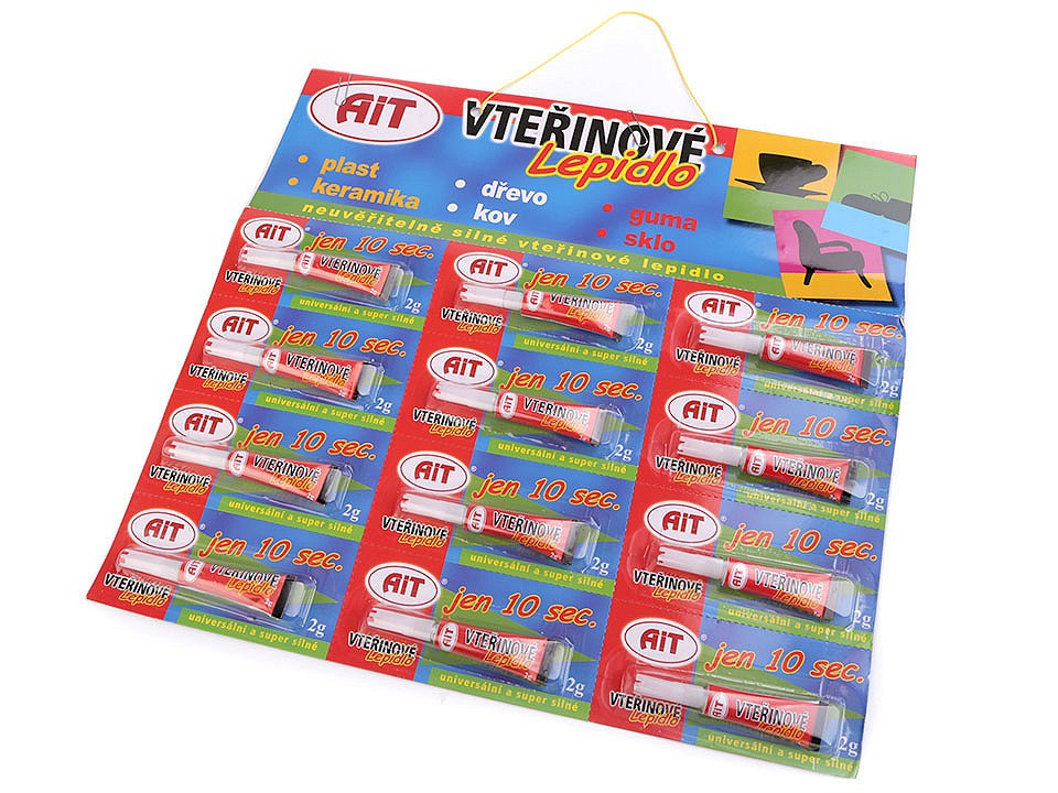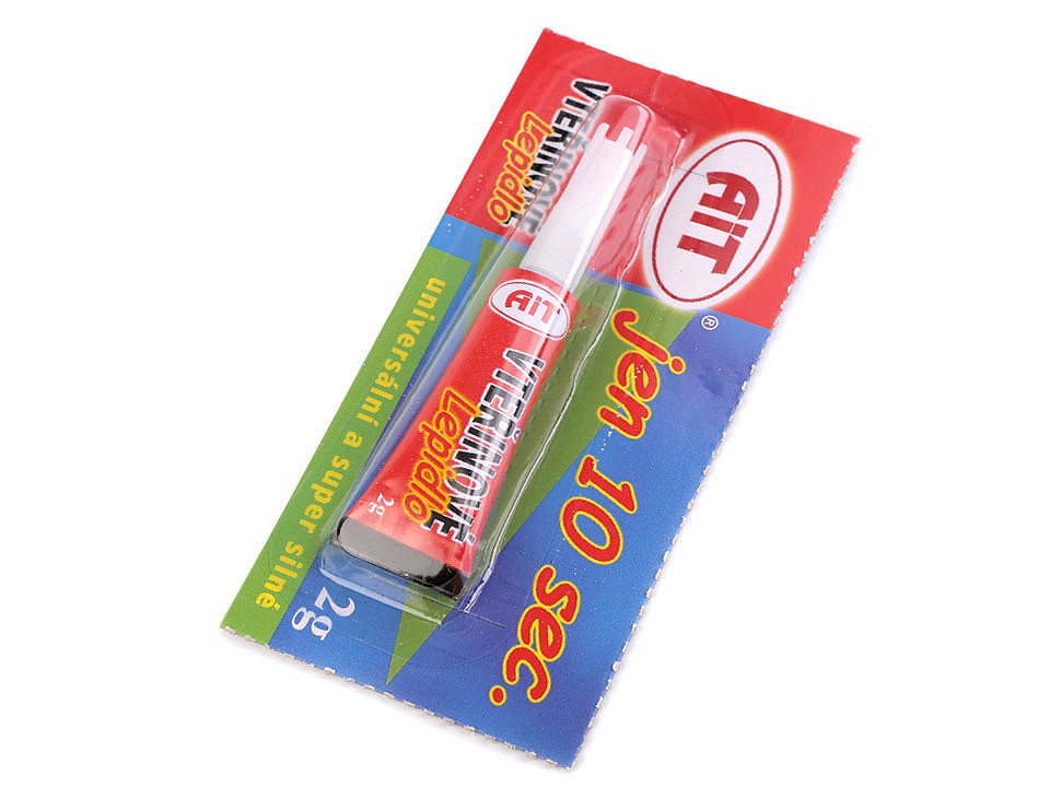 Univerzální, super silné kyanoakrylátové vteřinové lepidlo k lepení plastu, porcelánu, kovu, kůže, gumy, kartonu a skla.