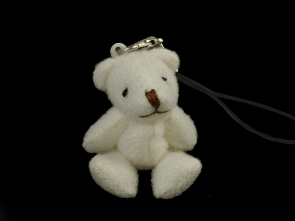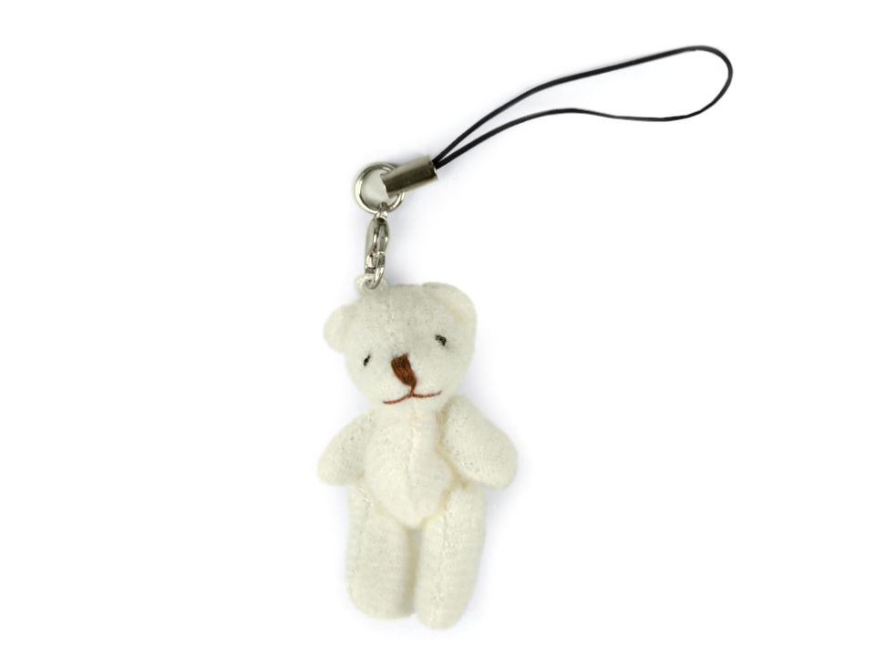 Malý medvídek s poutkem je vhodný na výrobu přívěsků a na kreativní tvoření s dětmi. Můžete jej zavěsit na batoh, tašku, pouzdro apod.