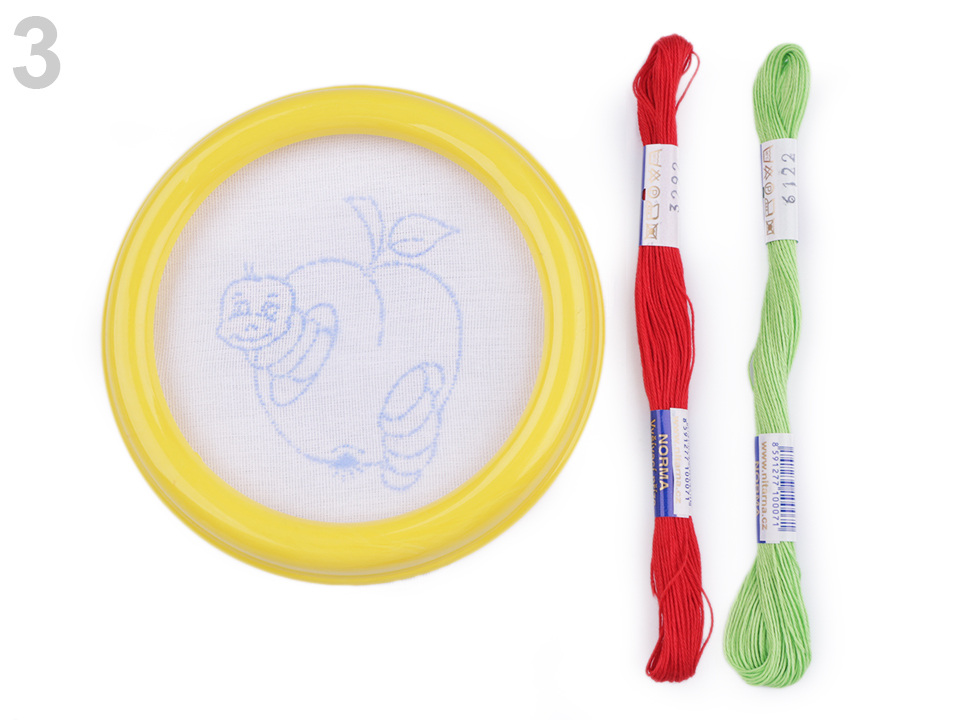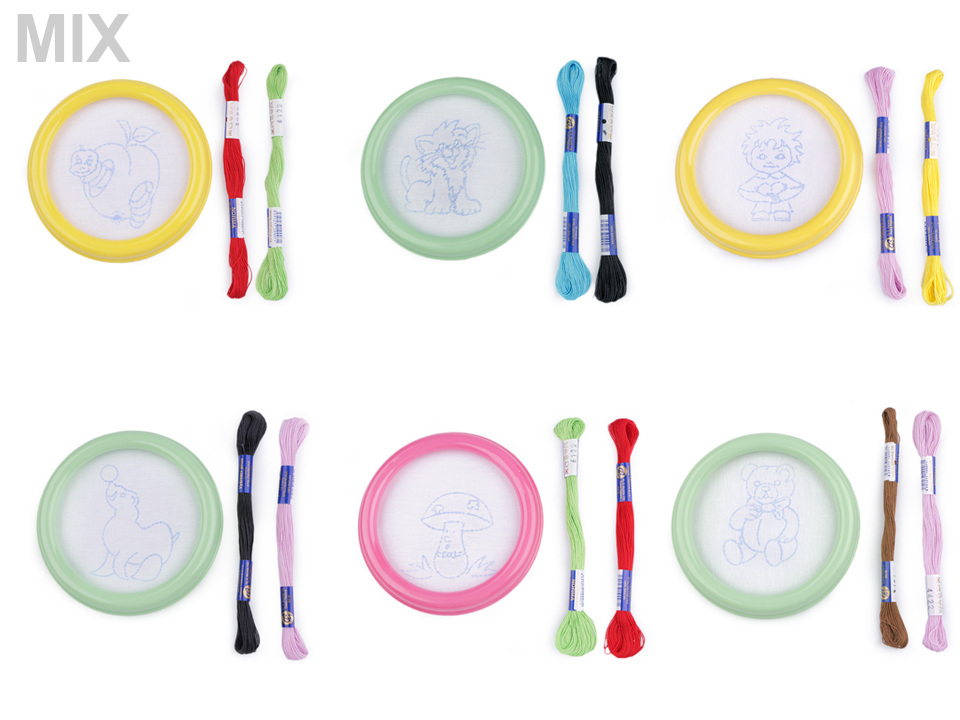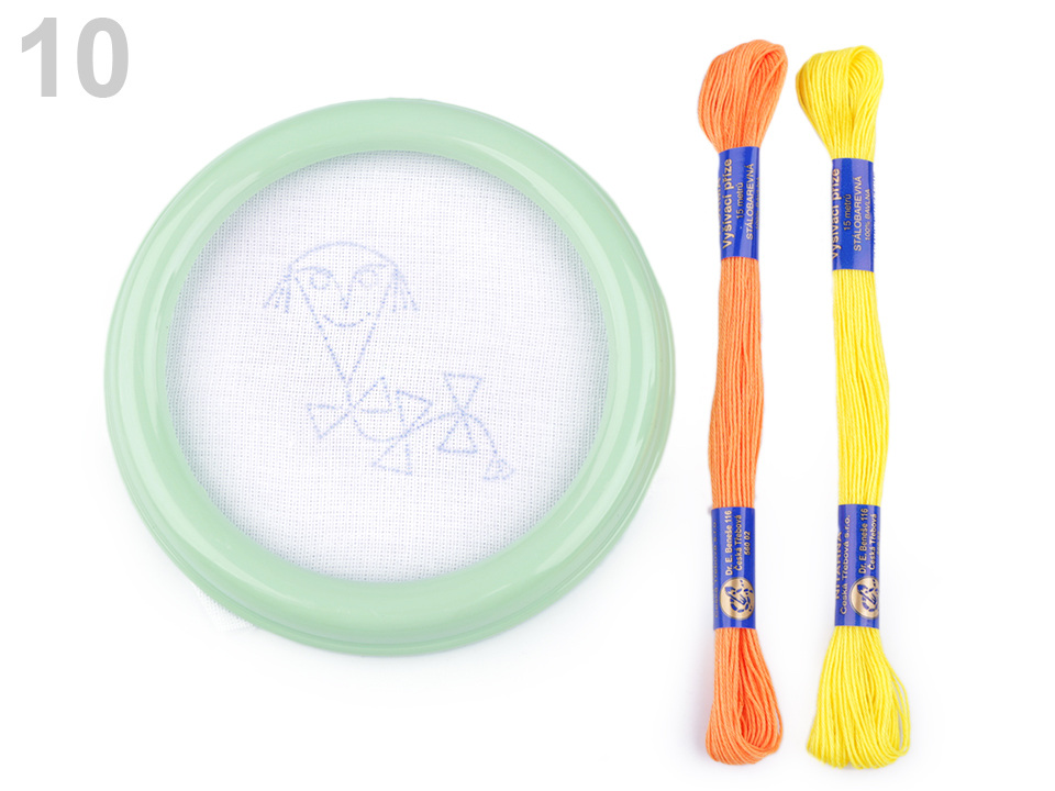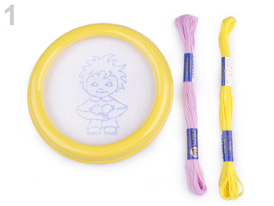 Naučte vaše šikovné děti vyšívat. Souprava dětského vyšívání obsahuje kulatý rámeček s látkou, která má předtištěný motiv. V balení najdete také dvě kvalitní vyšívací příze mouline ze 100% bavlny.