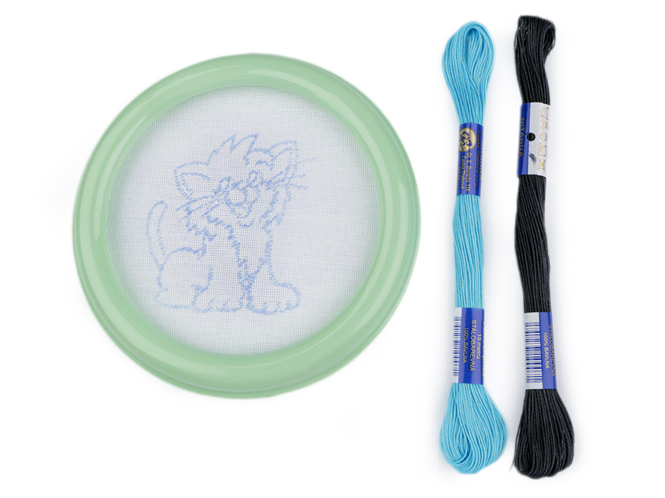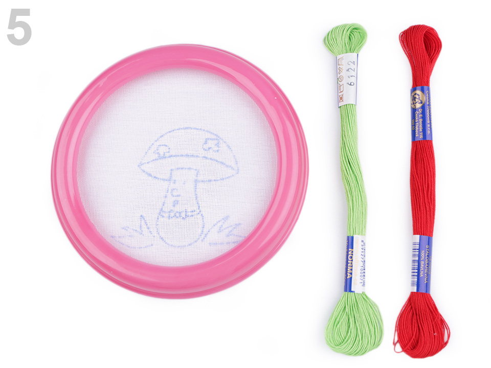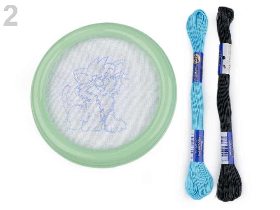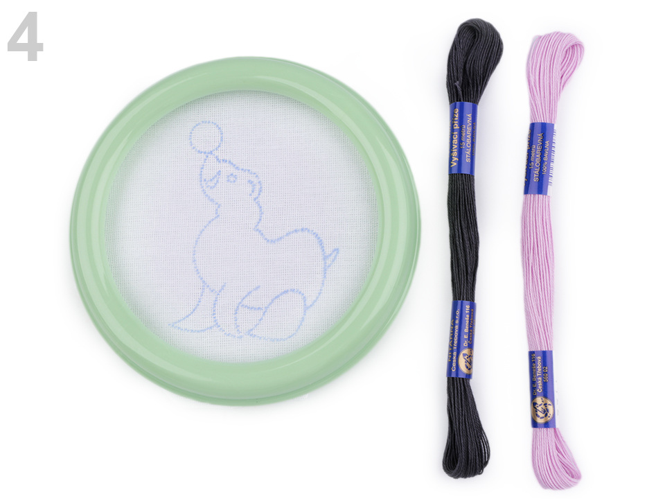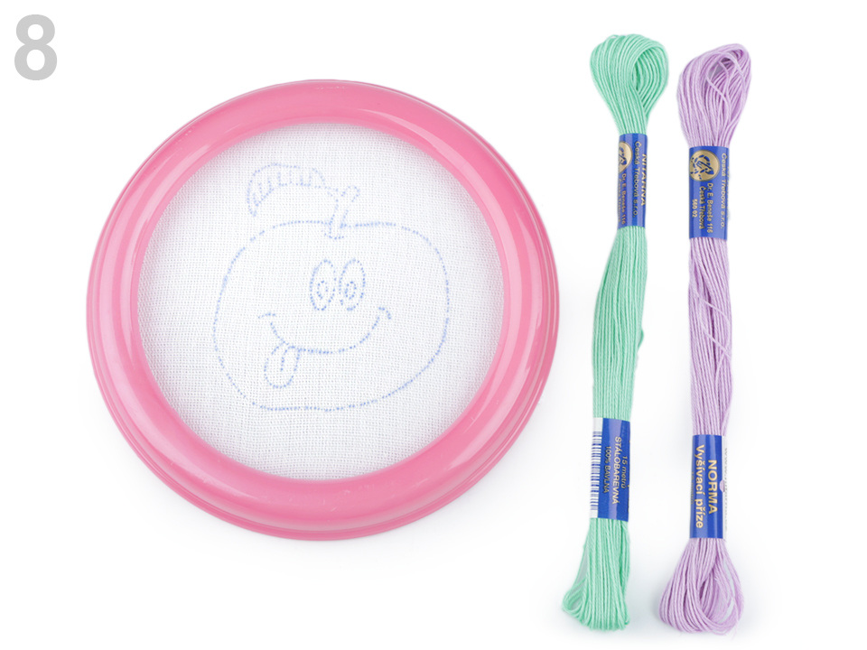 Naučte vaše šikovné děti vyšívat. Souprava dětského vyšívání obsahuje kulatý rámeček s látkou, která má předtištěný motiv. V balení najdete také dvě kvalitní vyšívací příze mouline ze 100% bavlny.