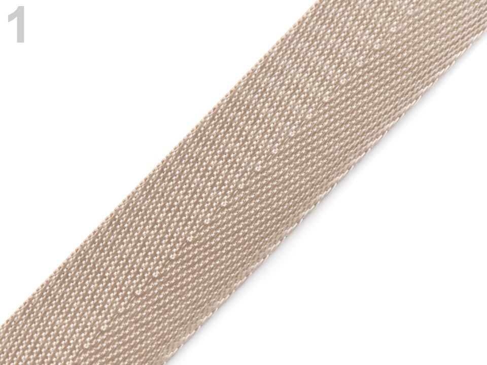 Použití: Popruh využijete na batohy, kabelky či tašky. Můžete jej také použít jako výplet čalouněného nábytku nebo k lemování textilních výrobků.
