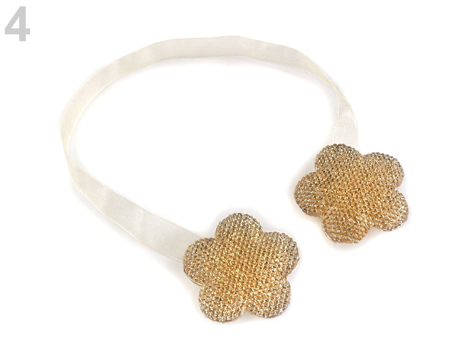Dekorační spony jsou vhodné na sepnutí závěsů a záclon. Spojuje je šifónová stuha. K sobě se upevňují silnými magnety, pomocí kterých upravíte závěsy či záclony do požadovaného tvaru.