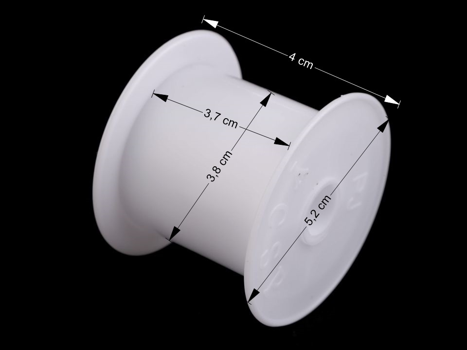 Plastovou cívku využijete k namotávání nití, provázků, stuh nebo prýmků. Uprostřed má dírku o průměru 11 mm. Můžete ji navléknou na tyč či provázek.