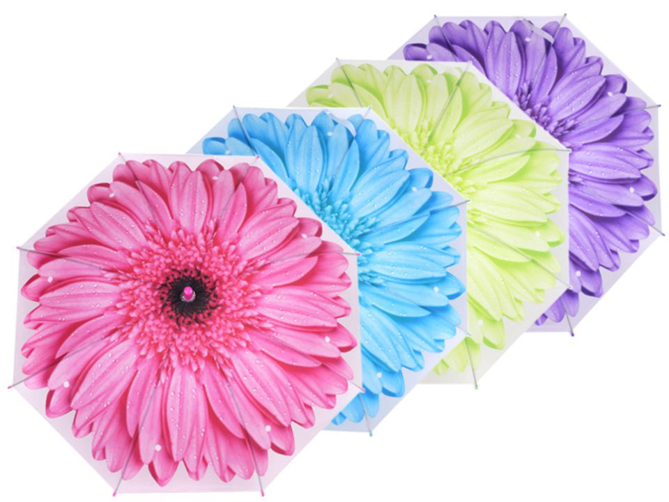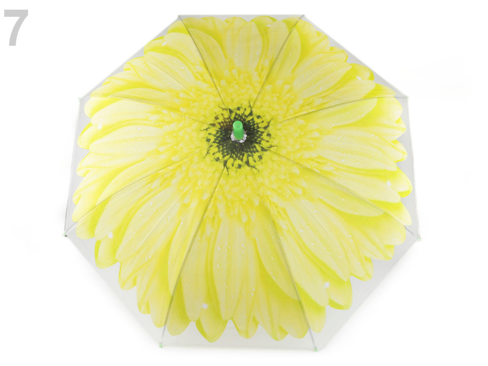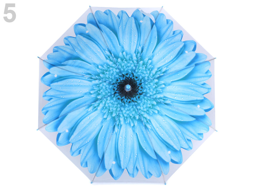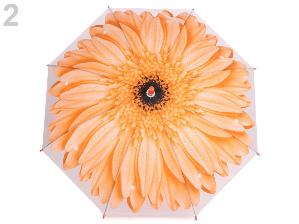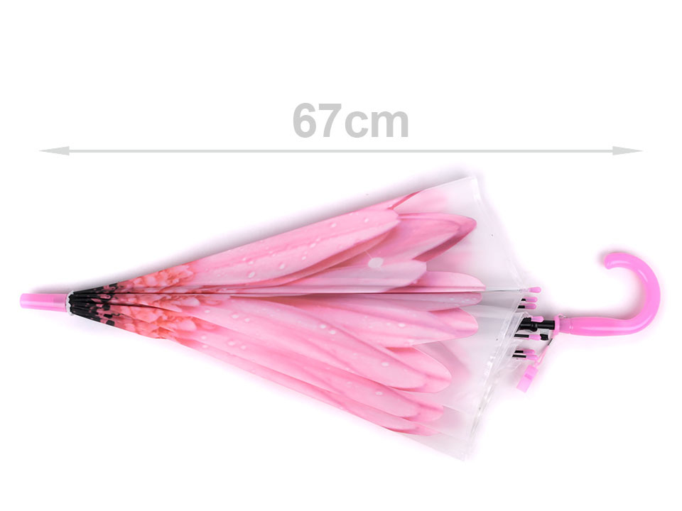 Dětský vystřelovací deštník s designem velkého rozevřeného květu se doslova rozzáří nad hlavou. Na rukojeti má píšťalku.