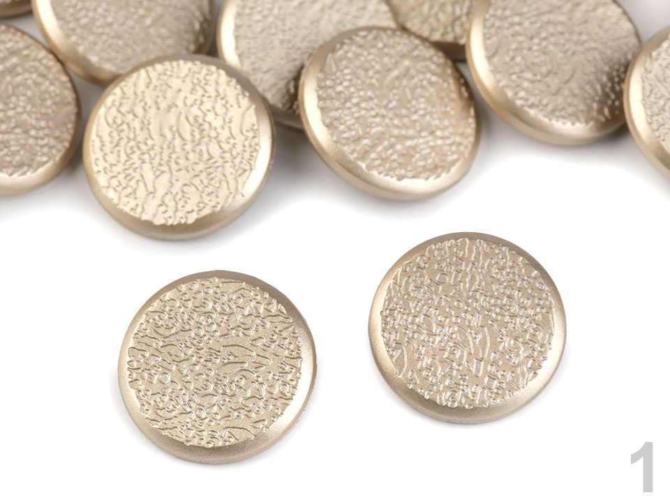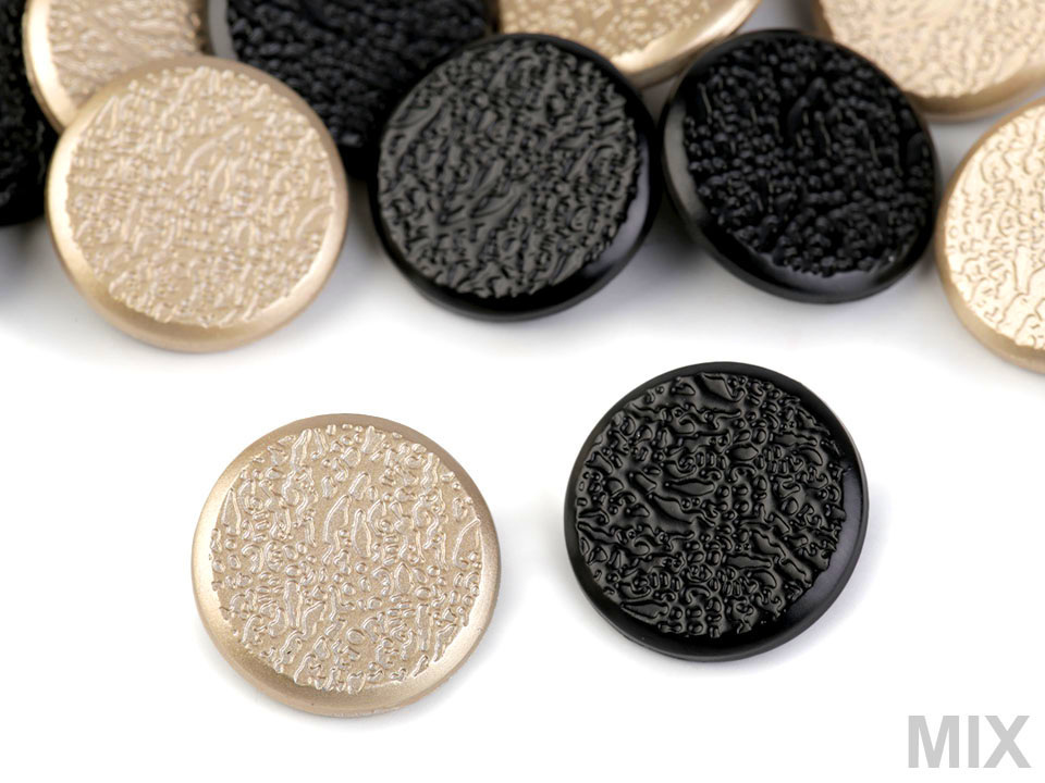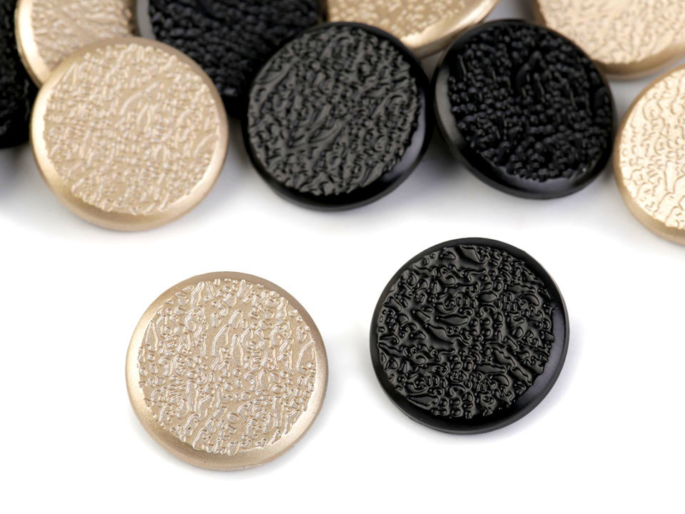 Kovové knoflíky zdobí reliéf. Využijete je k našití na saka, kabáty, svetry apod.