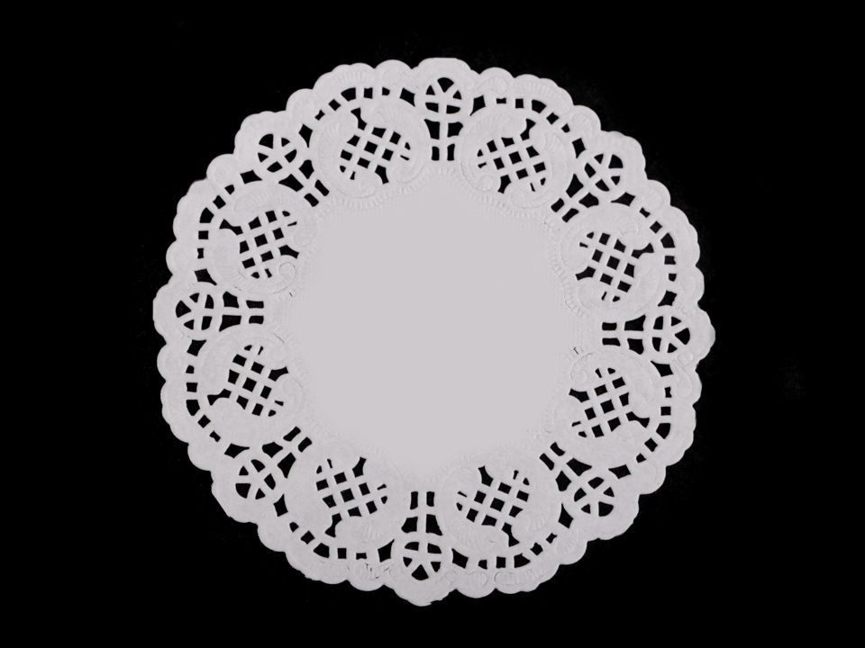 Rozetové papírové krajky křehce ozdobí slavnostně prostřený stůl. Hodí se jako ozdoba pod vázičky, svícny apod.