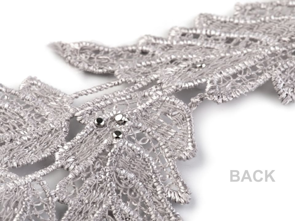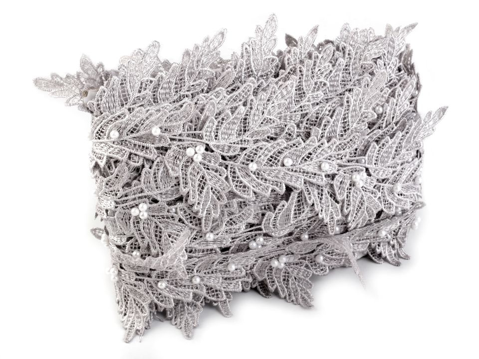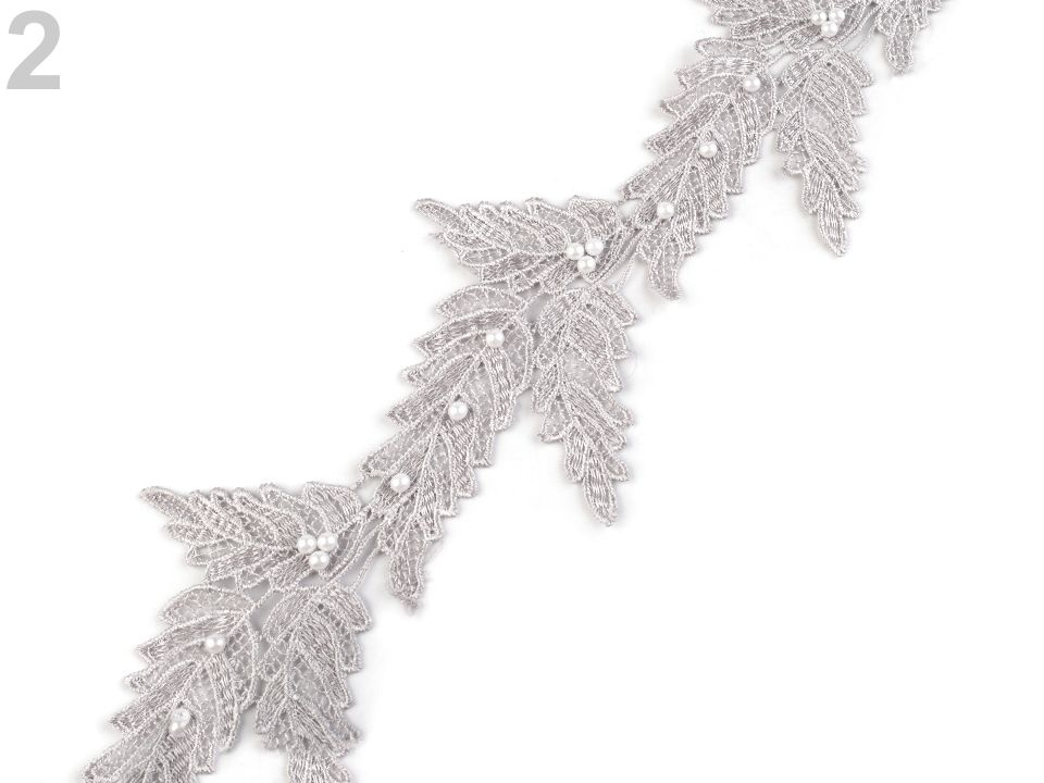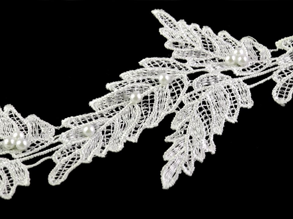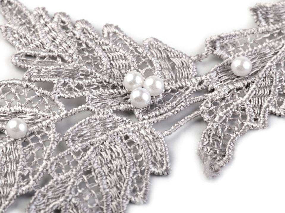 Vzdušnou krajku, která designem připomíná listy, zdobí přinýtované perly.