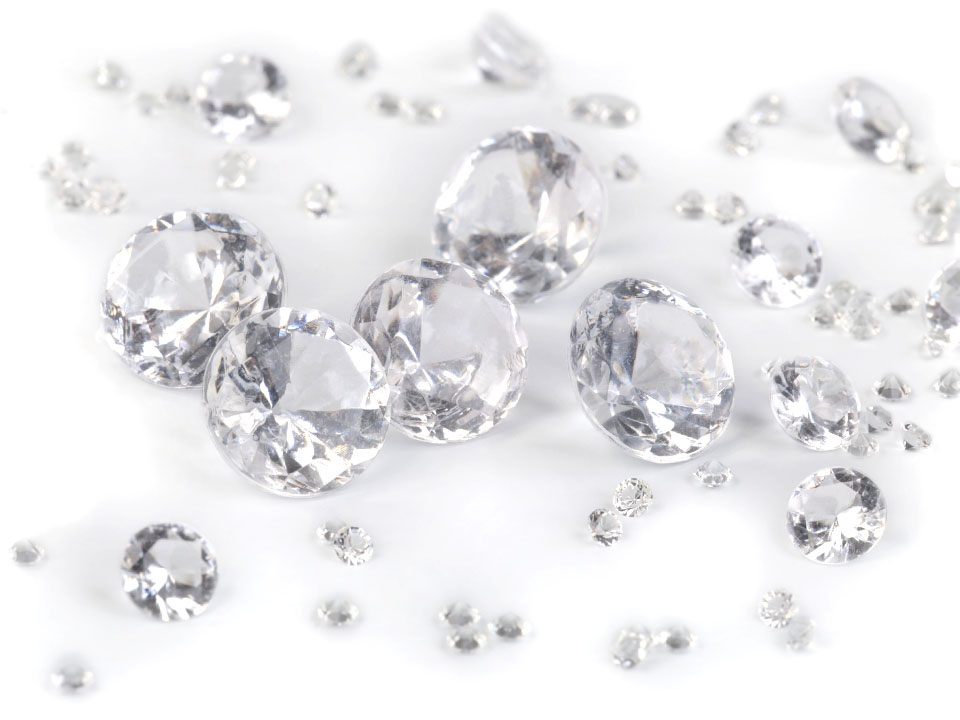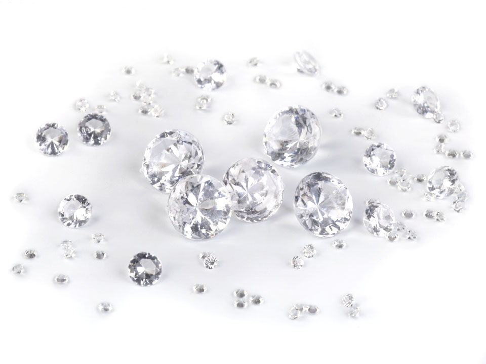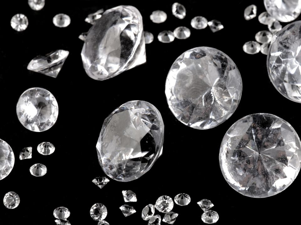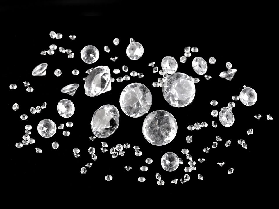 Broušené kamínky vynikají zářivým třpytem. Využijete je jako dekoraci slavnostní tabule, můžete je i naaranžovat do skleniček společně s umělými či živými květy.