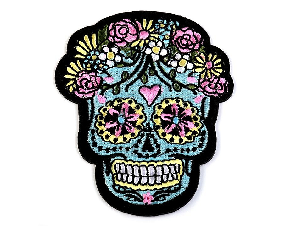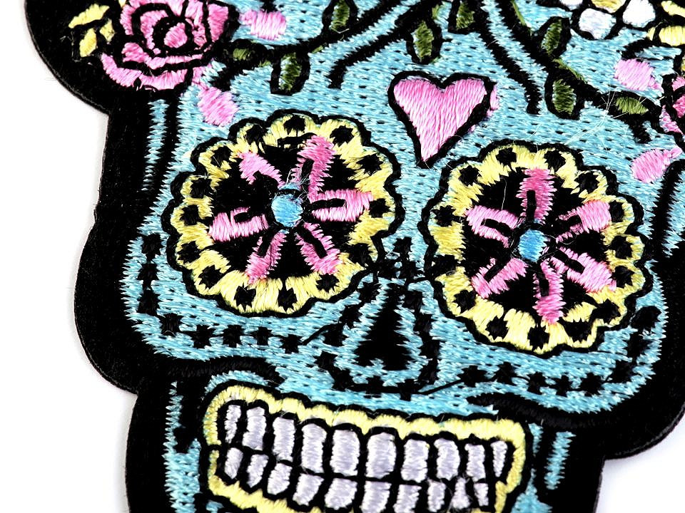 Nažehlovačka s motivem lebky je zjemněná květinovou výšivkou. Má kvalitní a celoplošné vyšívání.