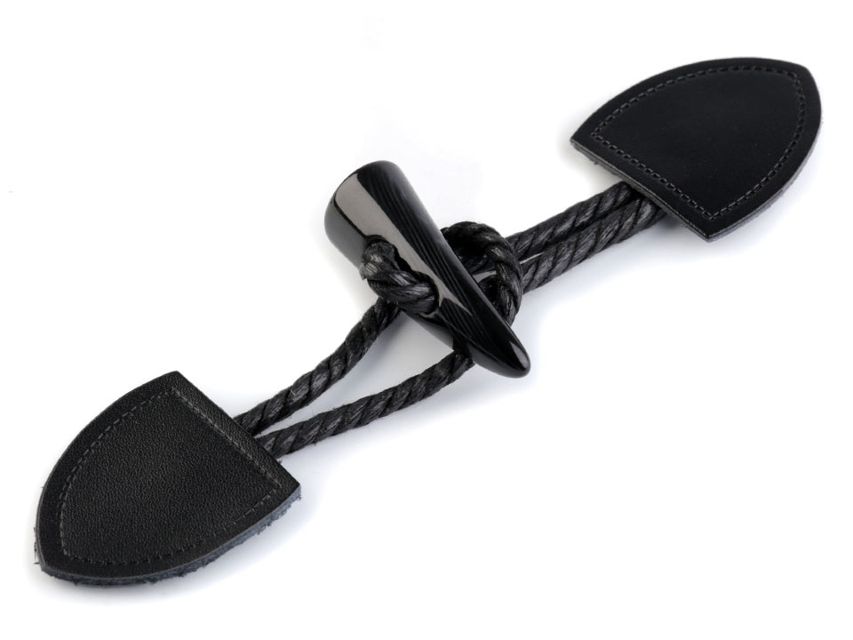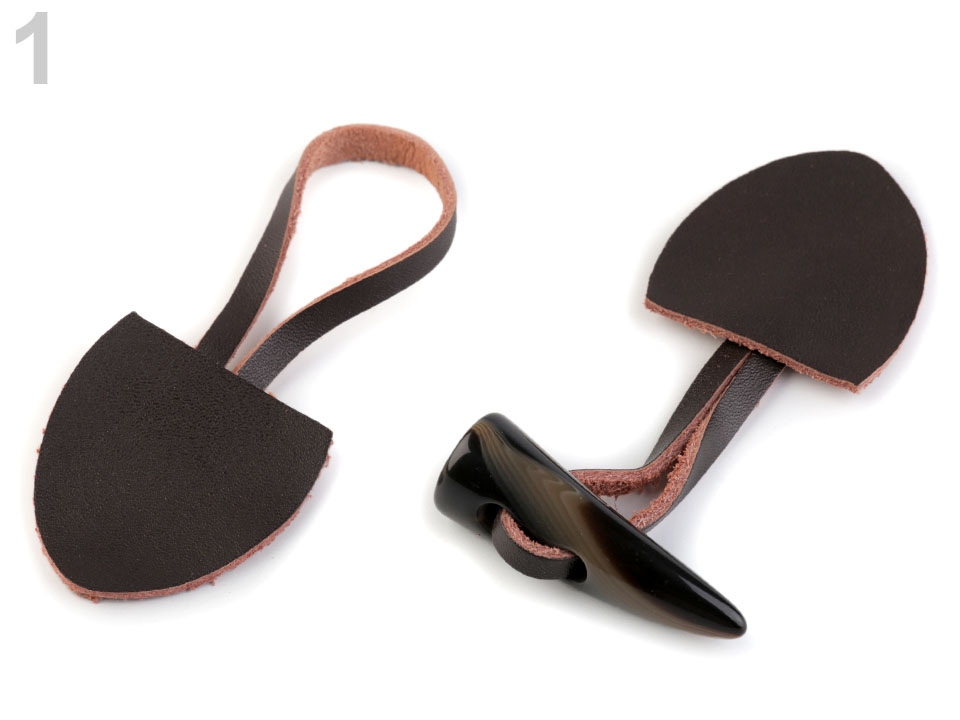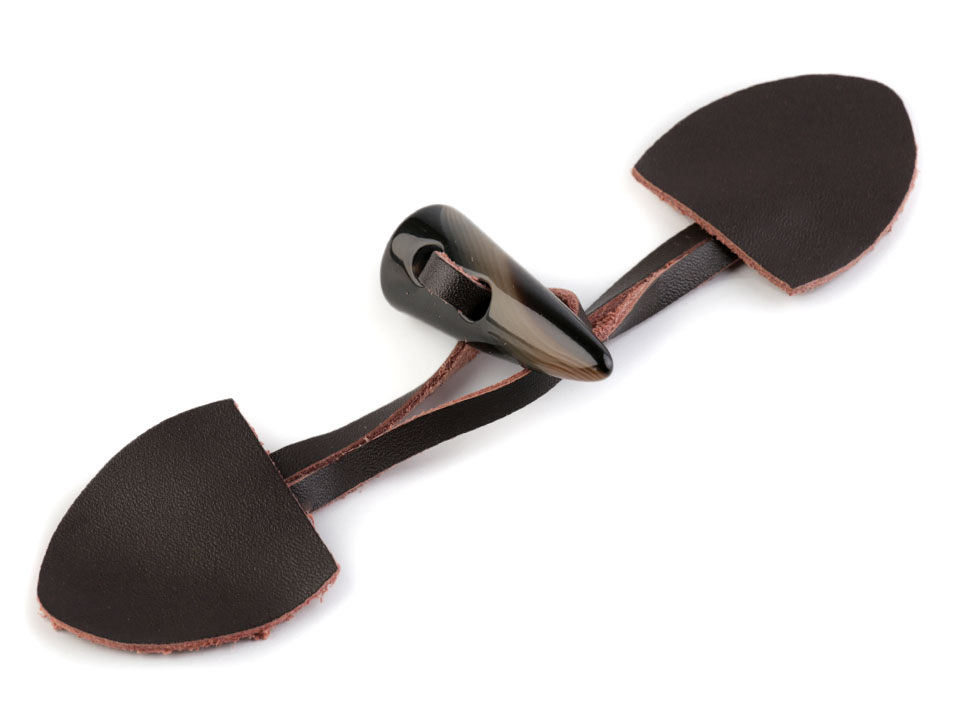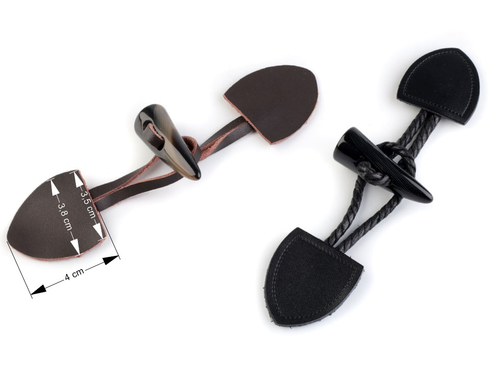 Kožené zapínání s rohem využijete na kabáty, vesty nebo svetry. Je vhodné i pro šití duffle coat. Zapínání je lepeno jen dočasně - jedná se o polotovar, který je nutno prošít.