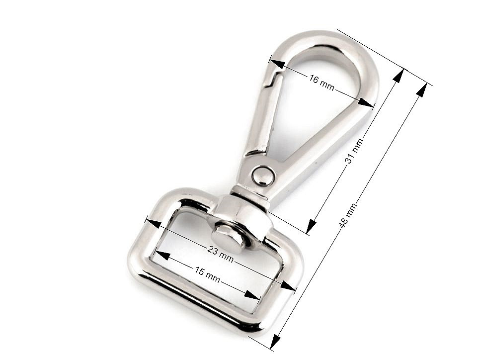 Otočná kovová karabina vám poslouží na upevnění popruhů k taškám či kabelkám nebo také na výrobu vodítek pro psy.